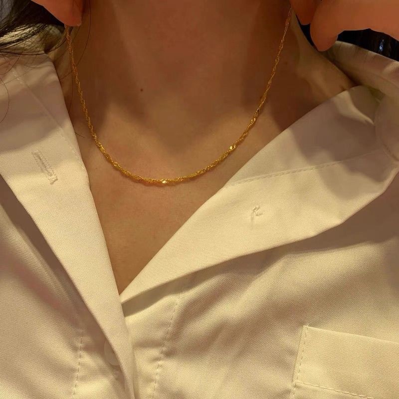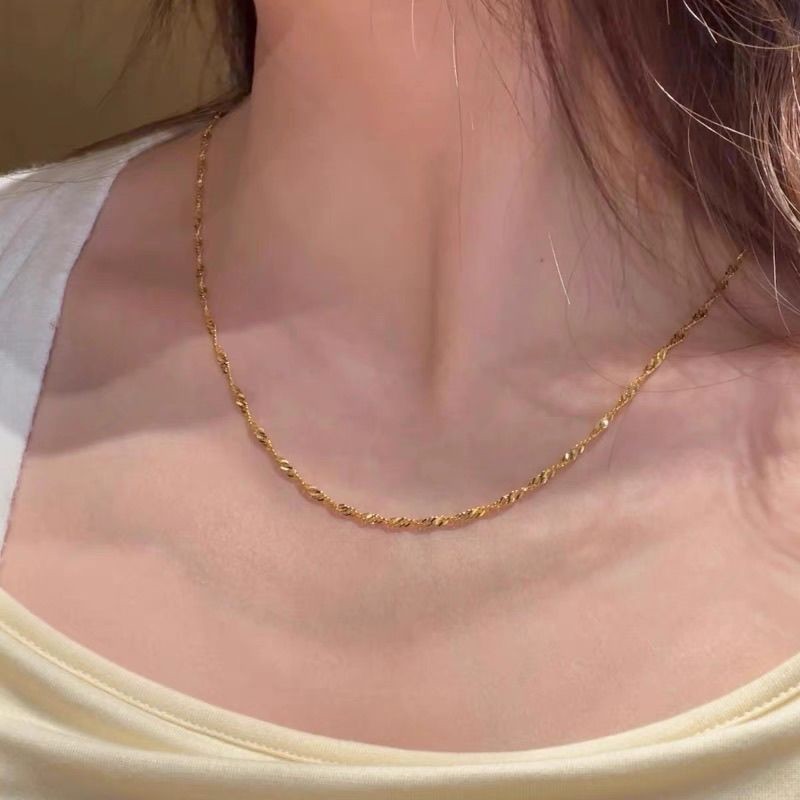 【金店同款】水波纹黄金项链亮晶晶轻奢沙金百搭素颈链锁骨高级感