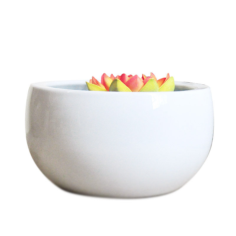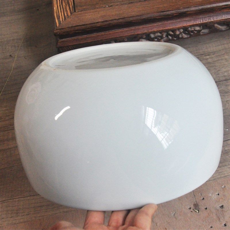 客厅家用小型陶瓷聚宝盆金鱼缸桌面摆件纯白阳台小院装饰水族箱