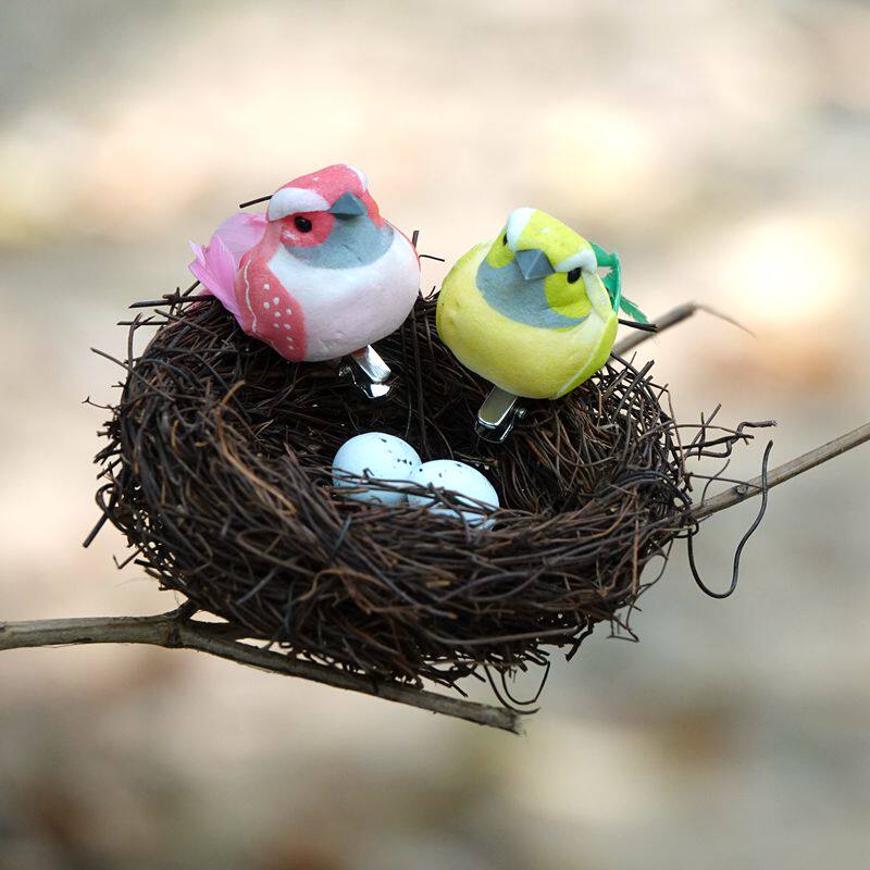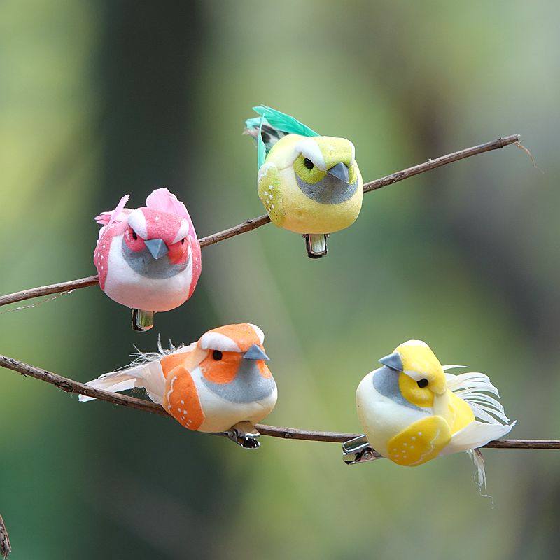 新款仿真鸟可爱客厅盆栽装饰道具造景小鸟假鸟摆件夹子款真羽毛
