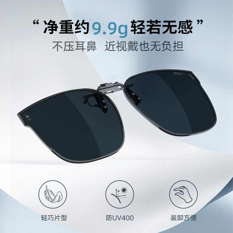 FILA斐乐偏光墨镜夹片开车钓鱼近视眼镜骑行超轻隐藏式男太阳眼镜