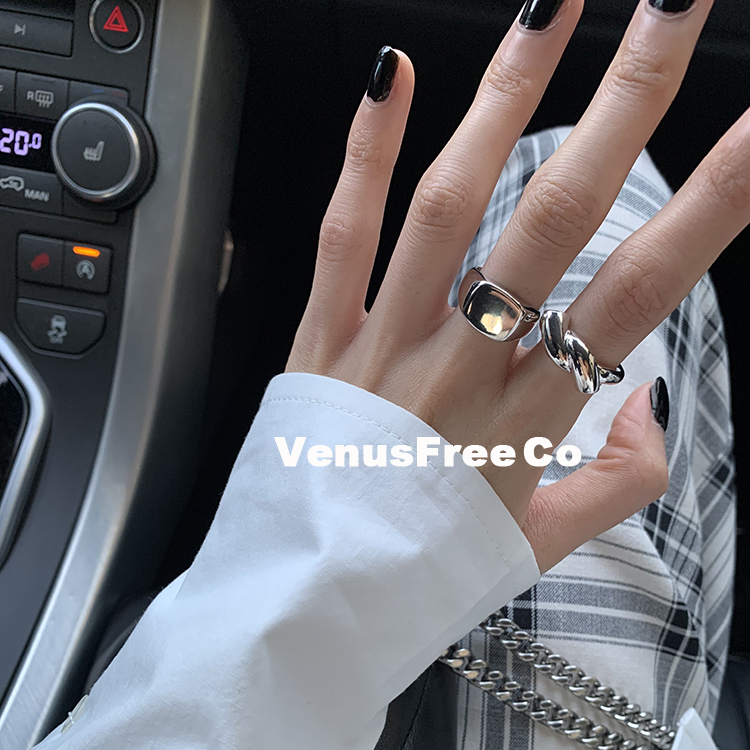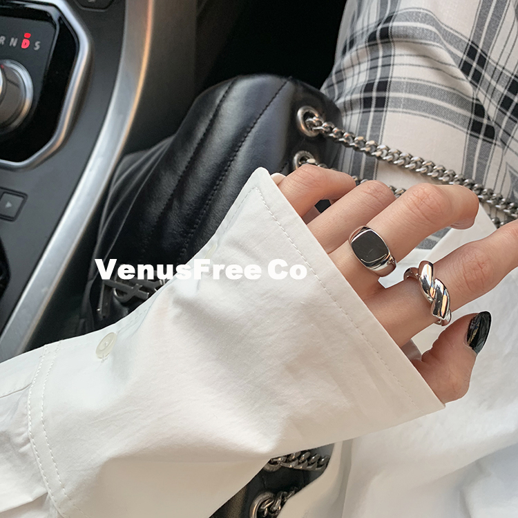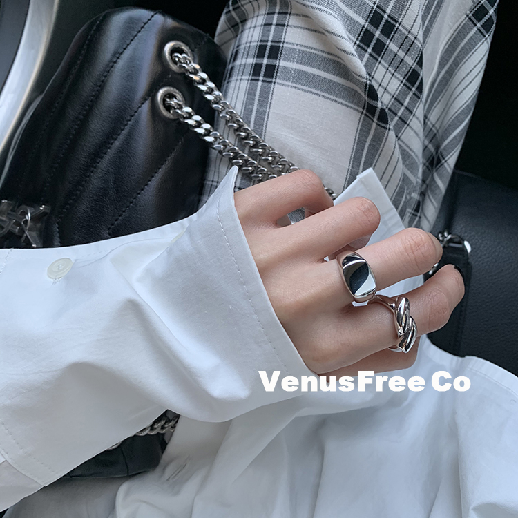 重工! 实心加厚s925纯银光面平切/打结宽戒指环简约男女叠戴chic