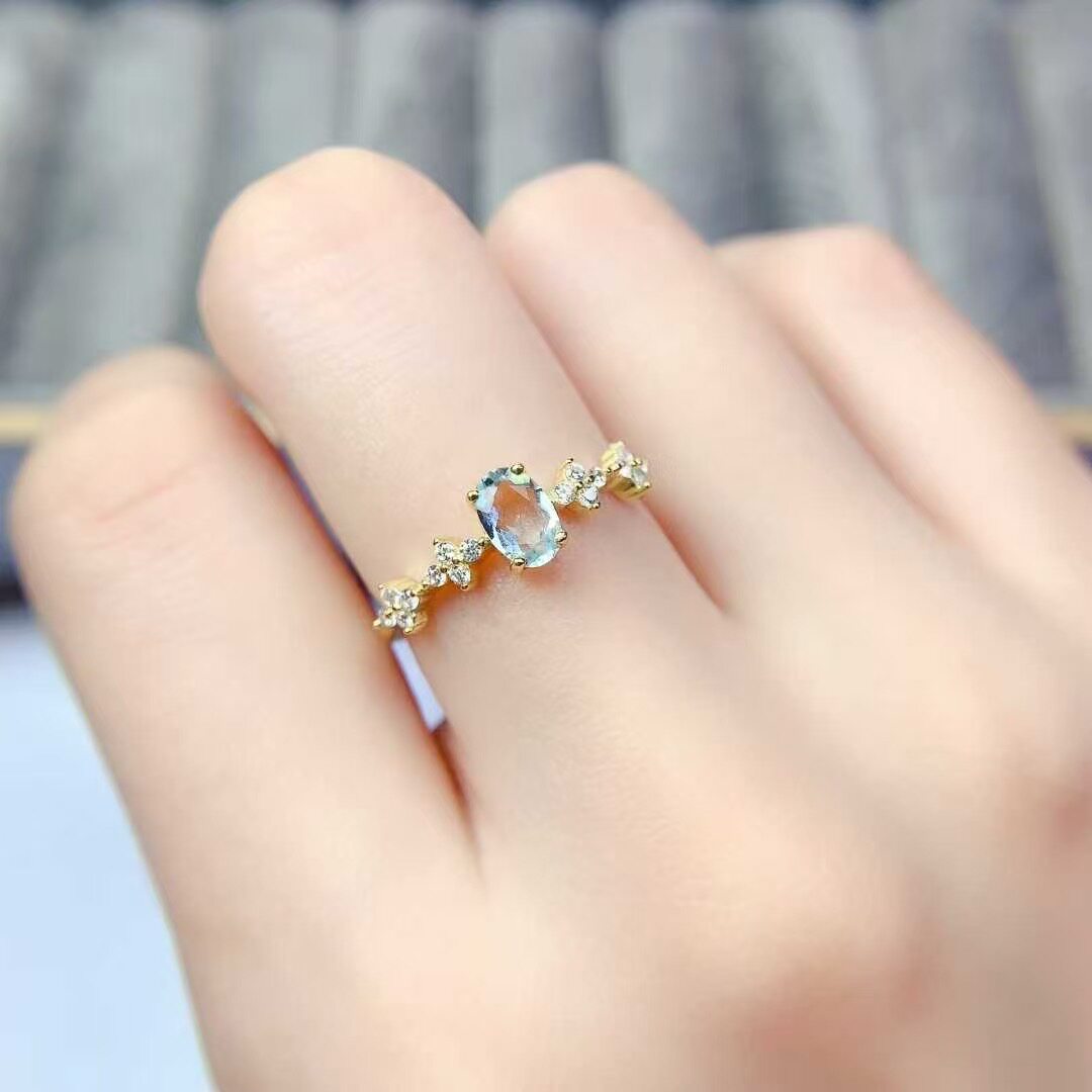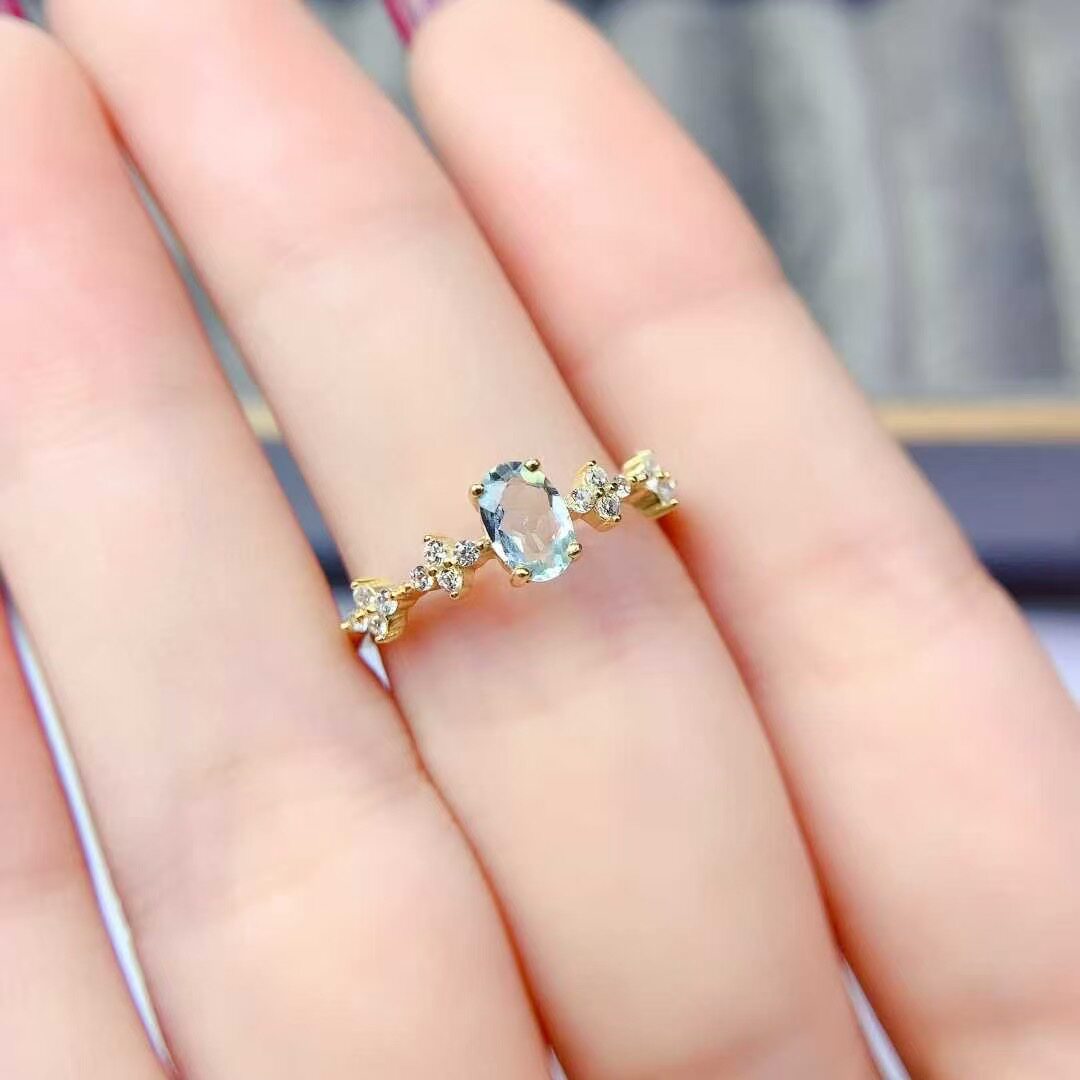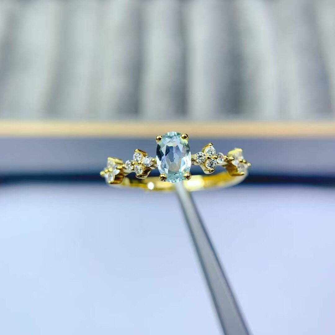 新款天然托帕石戒指925银镶嵌女时尚轻奢饰品送女友新年礼物