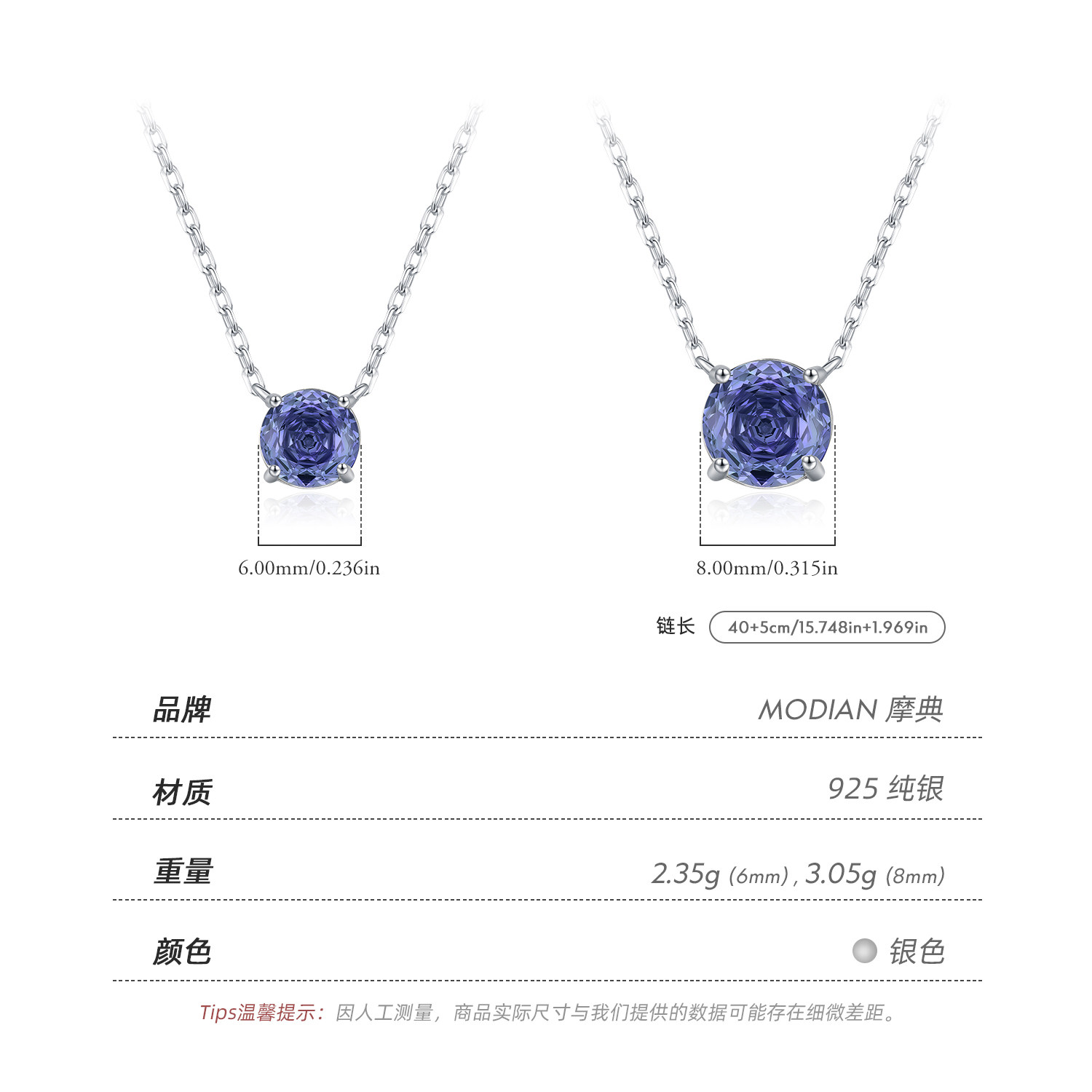 MODIAN摩典S925纯银轻奢坦桑色玫瑰切闪钻清冷感少女项链锁骨链女