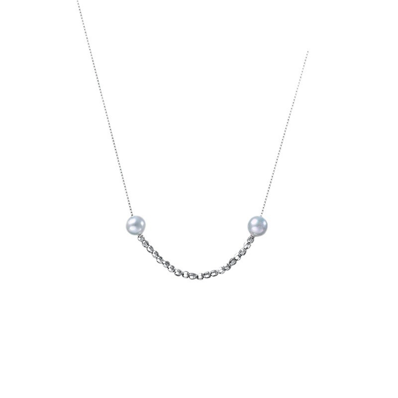 925银 5-6mm真多麻微笑链海水珍珠吊坠挂件衣服配饰短款锁骨链女