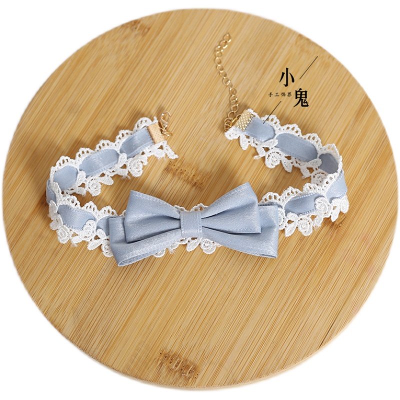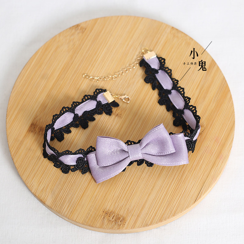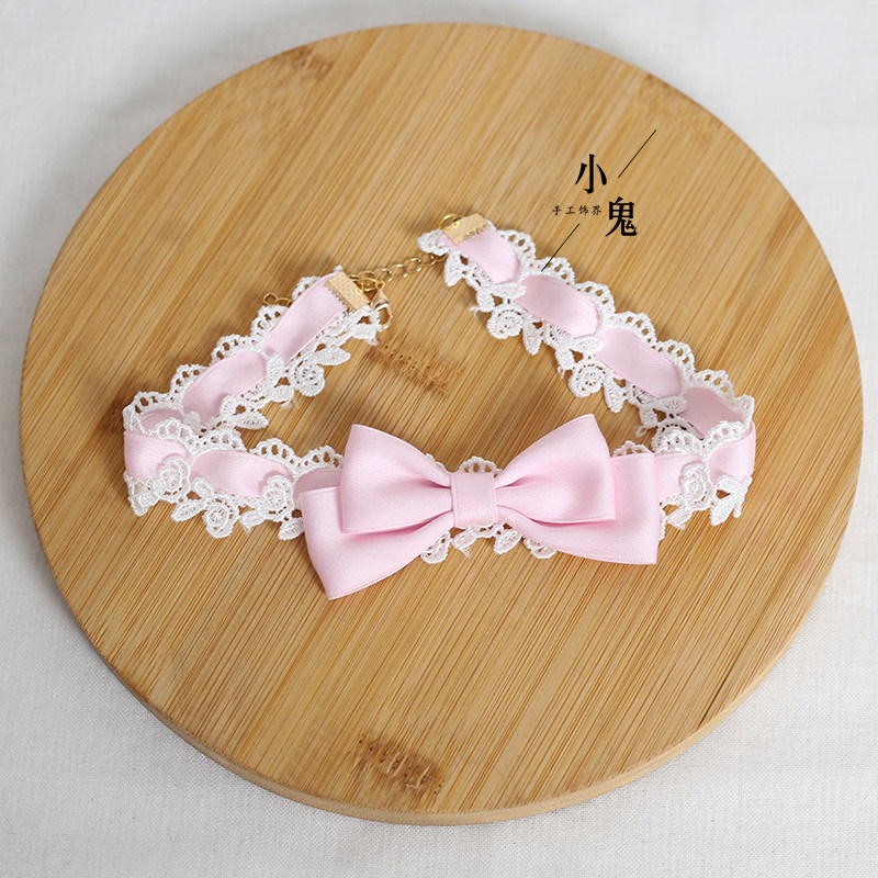 黑色蕾丝蝴蝶结手作黑甜蝴颈链少女粉项圈可爱呲甜lolita项链女仆