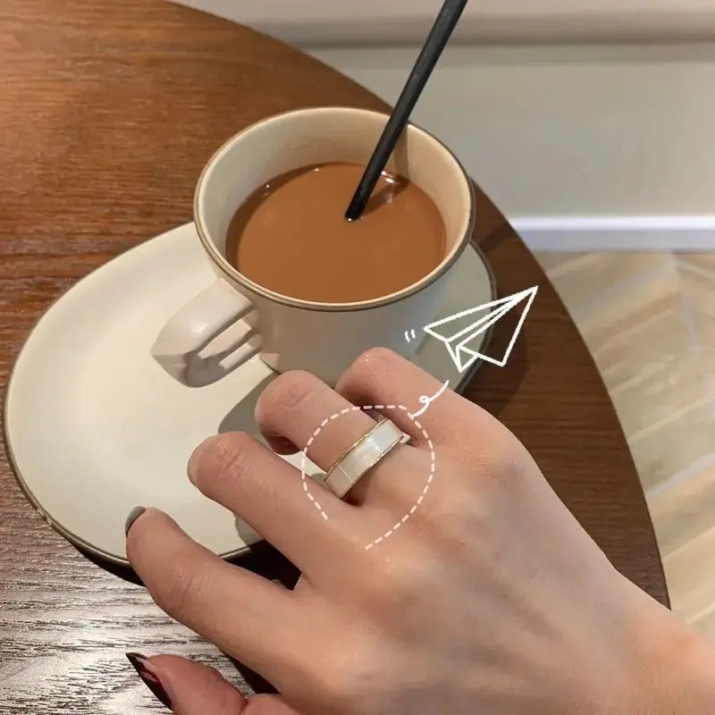 轻奢白贝母高级感开口戒指女ins双层素戒显手细小众设计指环男潮