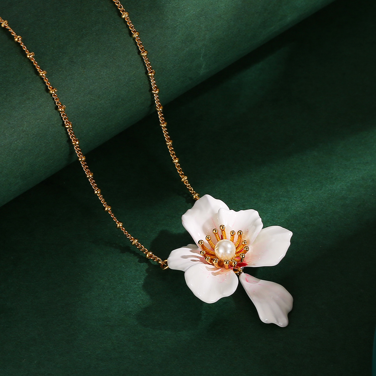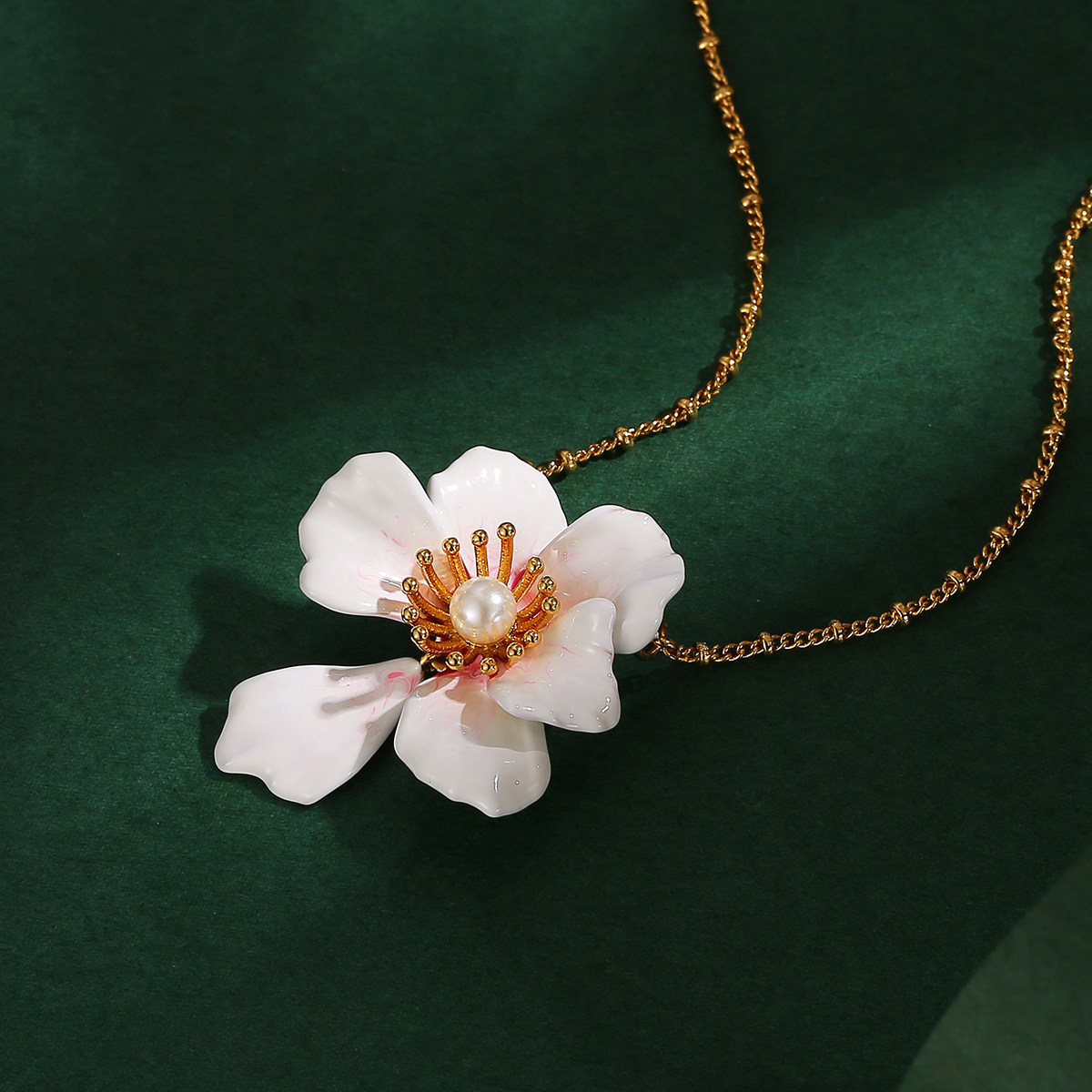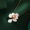 时尚新款珐琅釉镶嵌珍珠渐变粉白色樱花花朵项链可调节锁骨链女潮