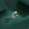 森系可爱珐琅彩水晶渐变花朵灰色兔子开口可调节戒指甜美生肖指环