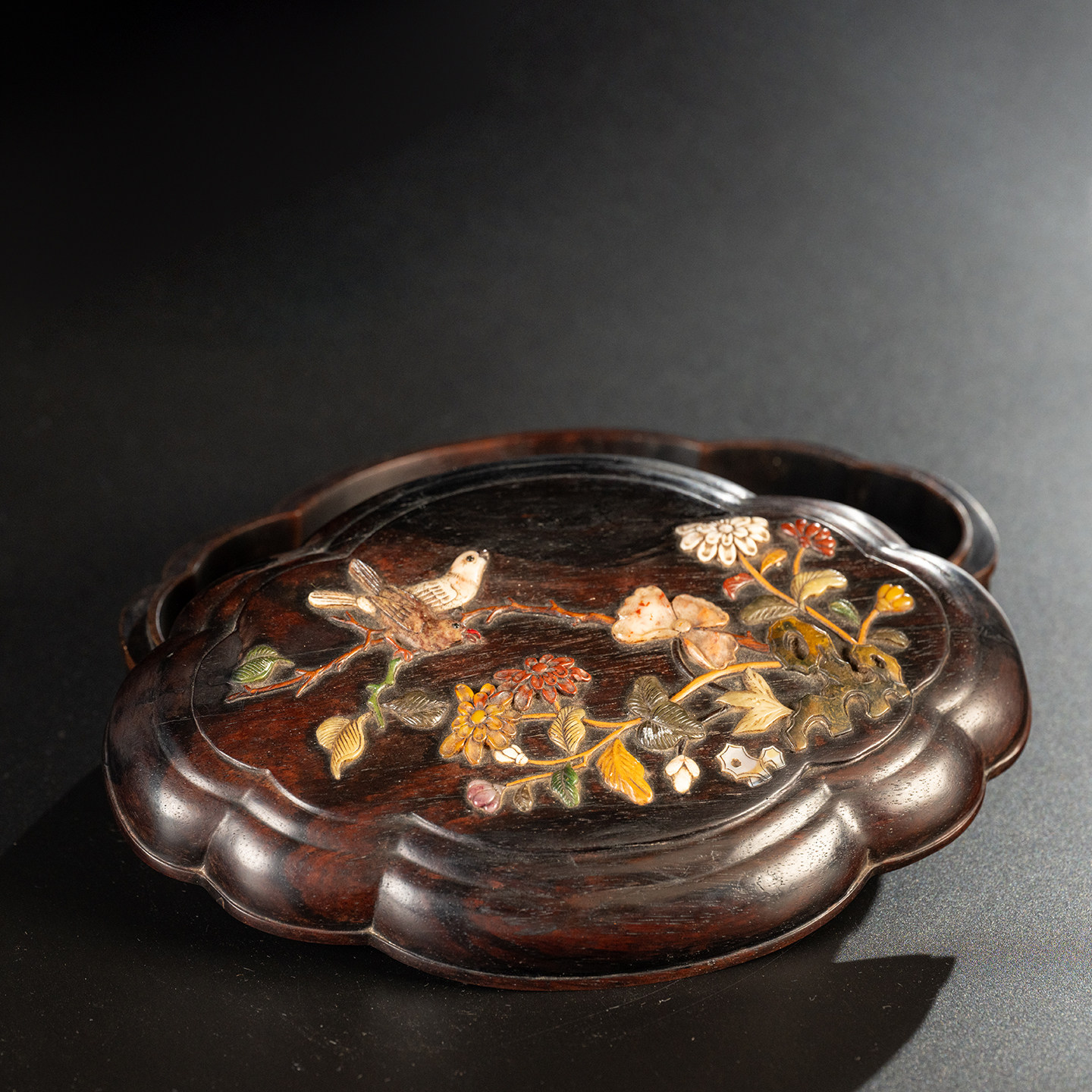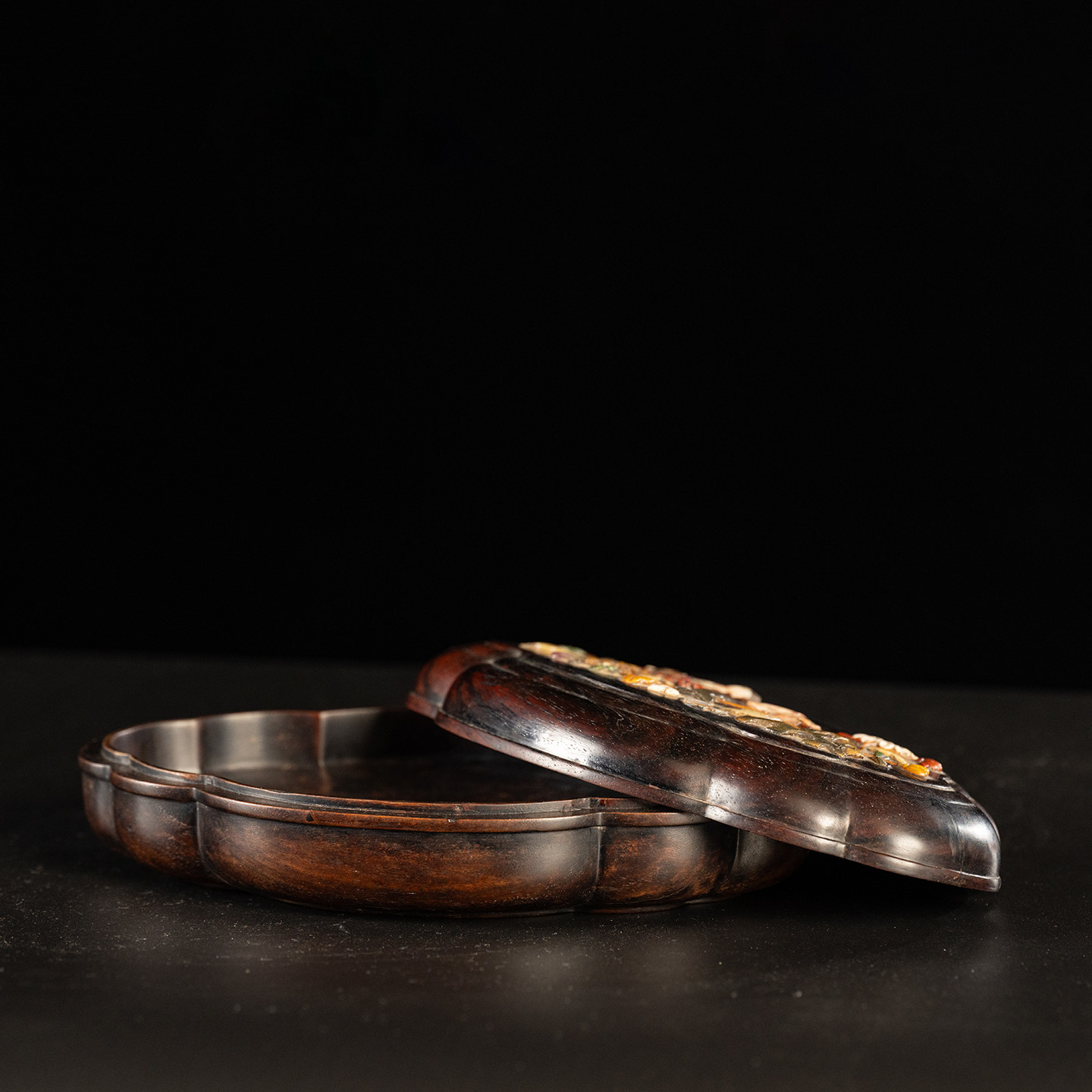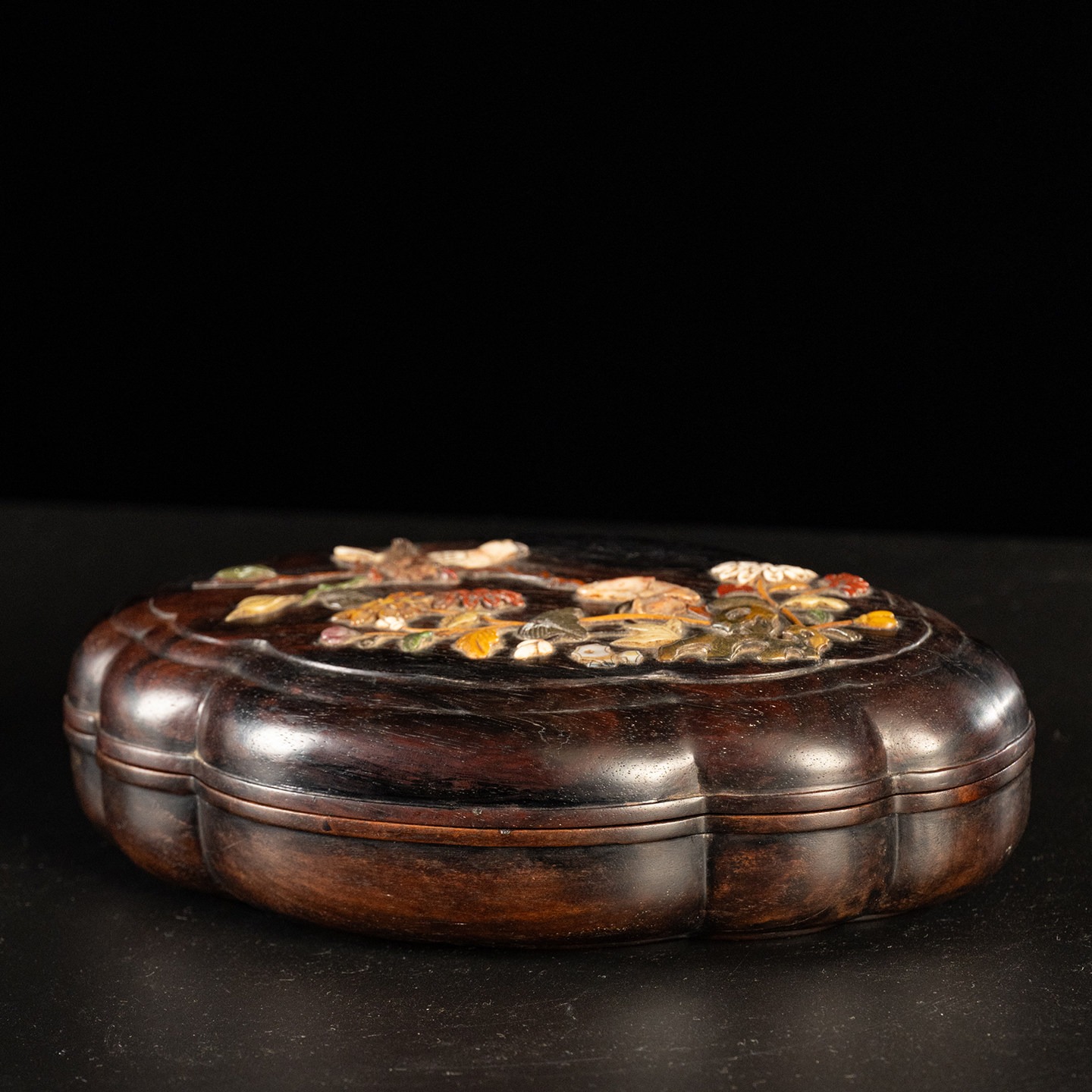 清代红木百宝嵌花鸟纹海棠形盖盒老物件古董收藏真品实木百宝箱