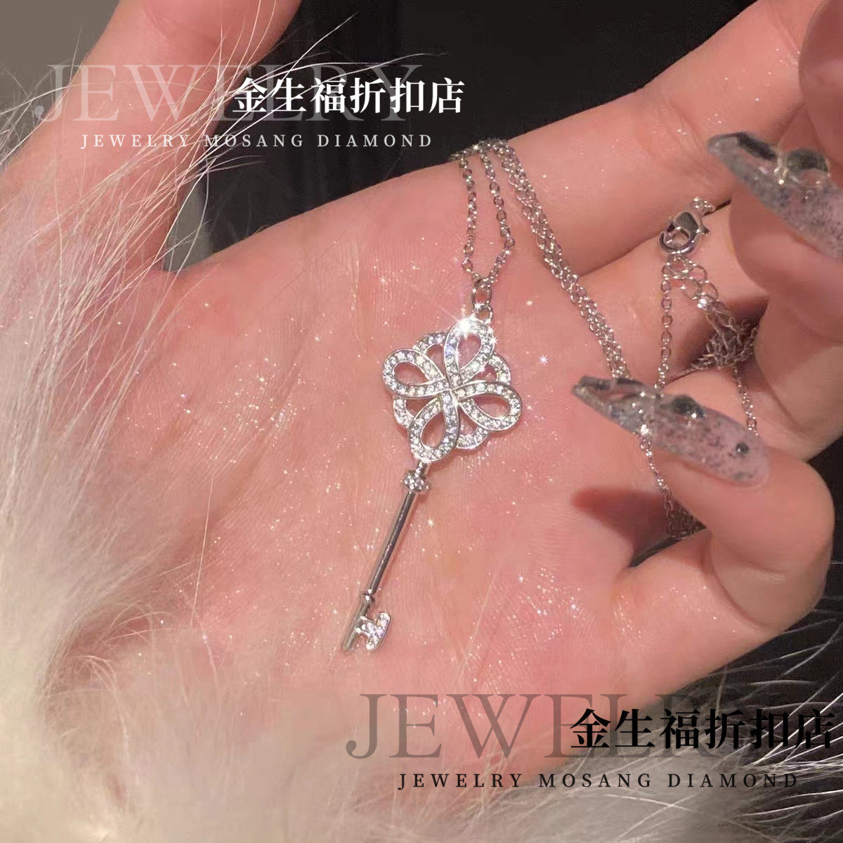 AU750金D色莫桑石多款钥匙项链纯银温柔长款百搭简约18K金毛衣链