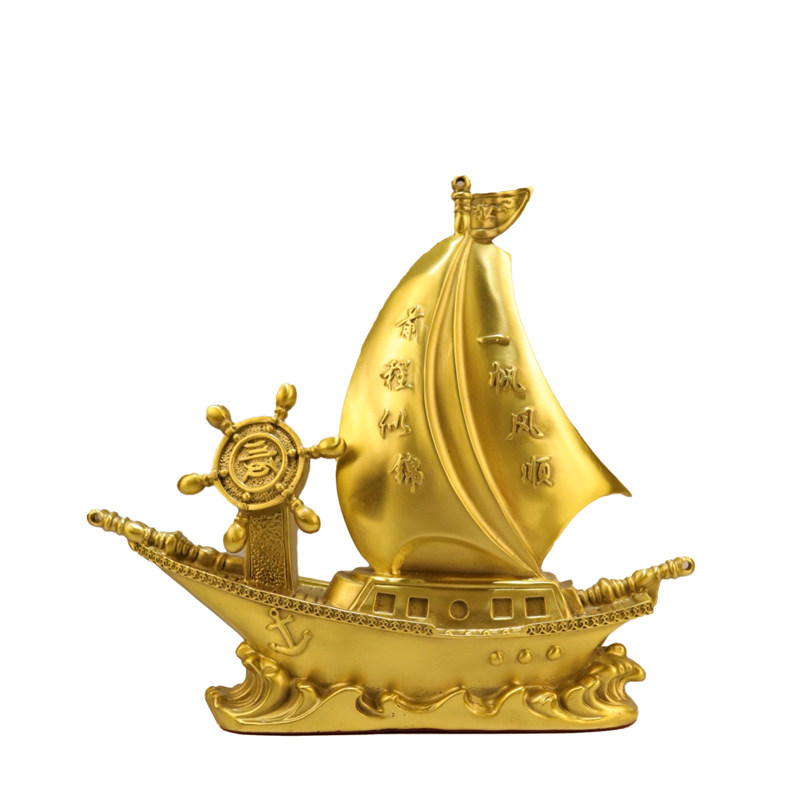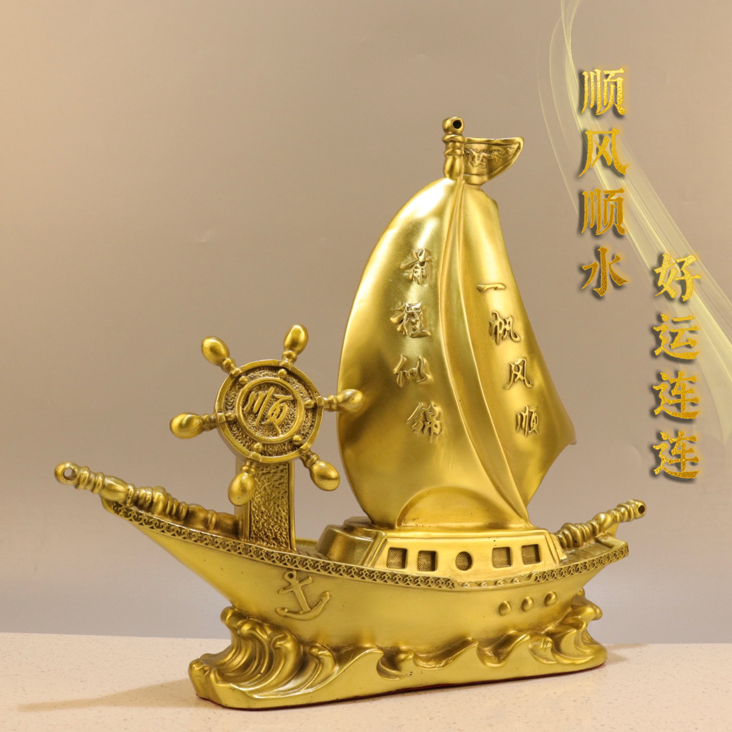 中式黄铜一帆风顺帆船摆件办公室桌面装饰祝福寓意家居玄关工艺品