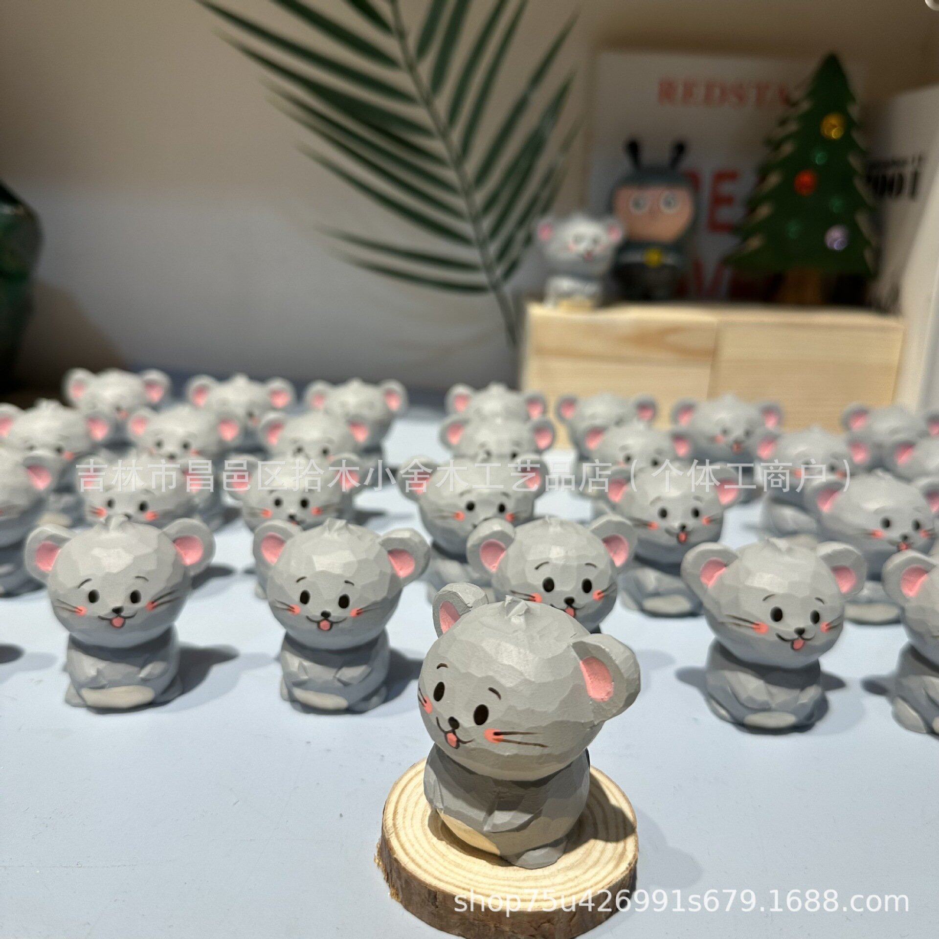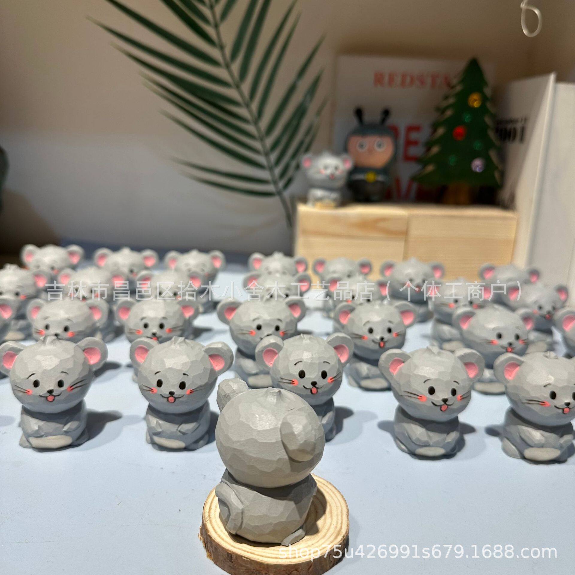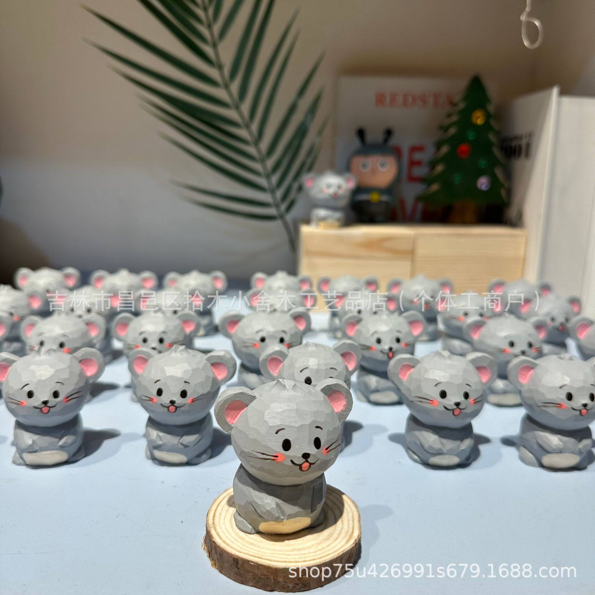 木制工艺品手工雕刻十二生肖老鼠可爱卡通动物摆件挂件手工木雕