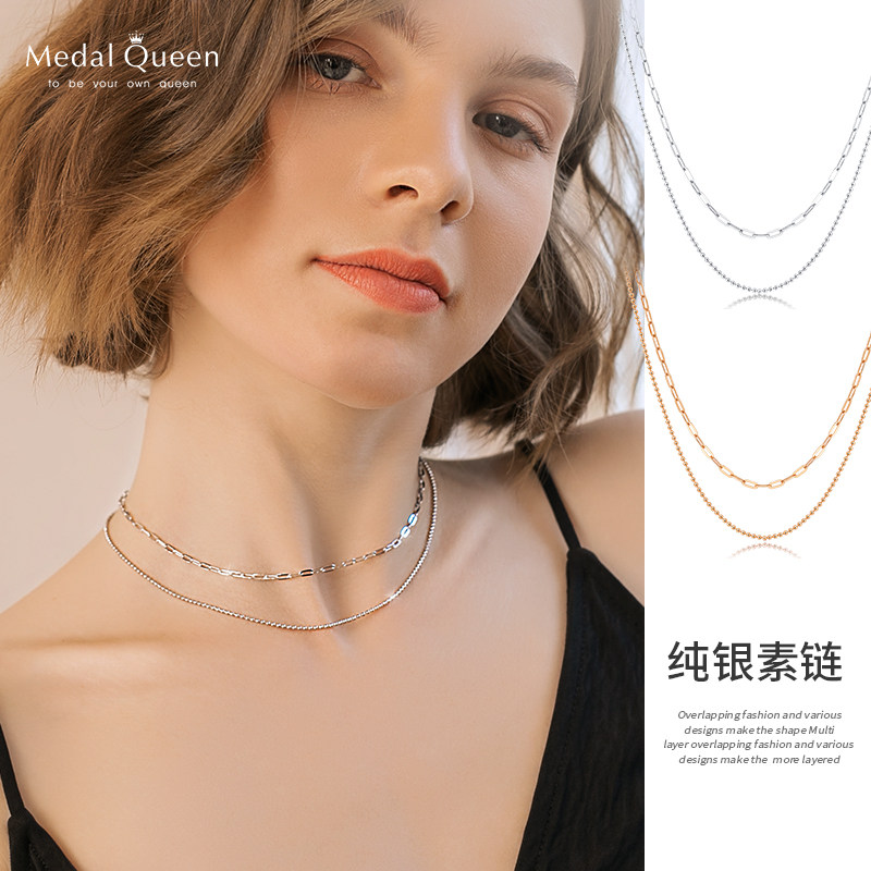 2026年新款个性纯银双层素链项链女潮冷淡风小众设计叠戴锁骨裸链