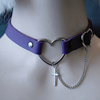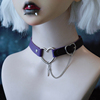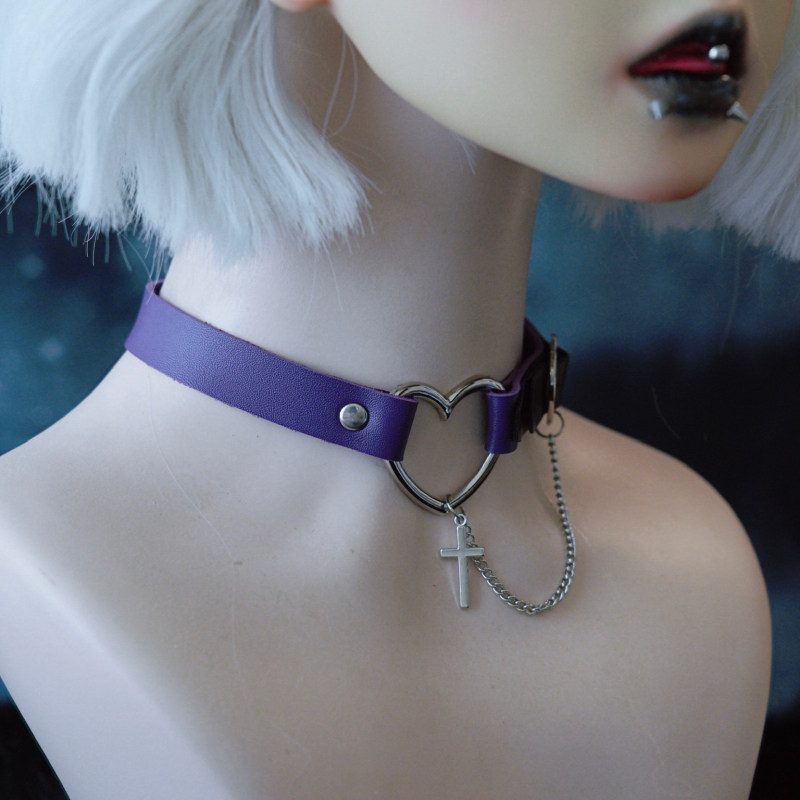 怪糖饰物集原创手工十字链条爱心仿皮颈链choker暗黑亚文化黑紫色