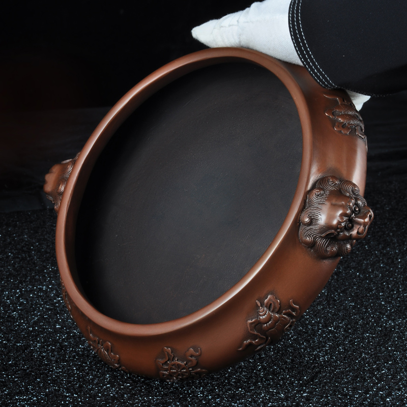 紫铜狮首耳八宝水盂茶洗笔洗家用水洗水盂笔洗缸洗毛笔洗茶杯盆