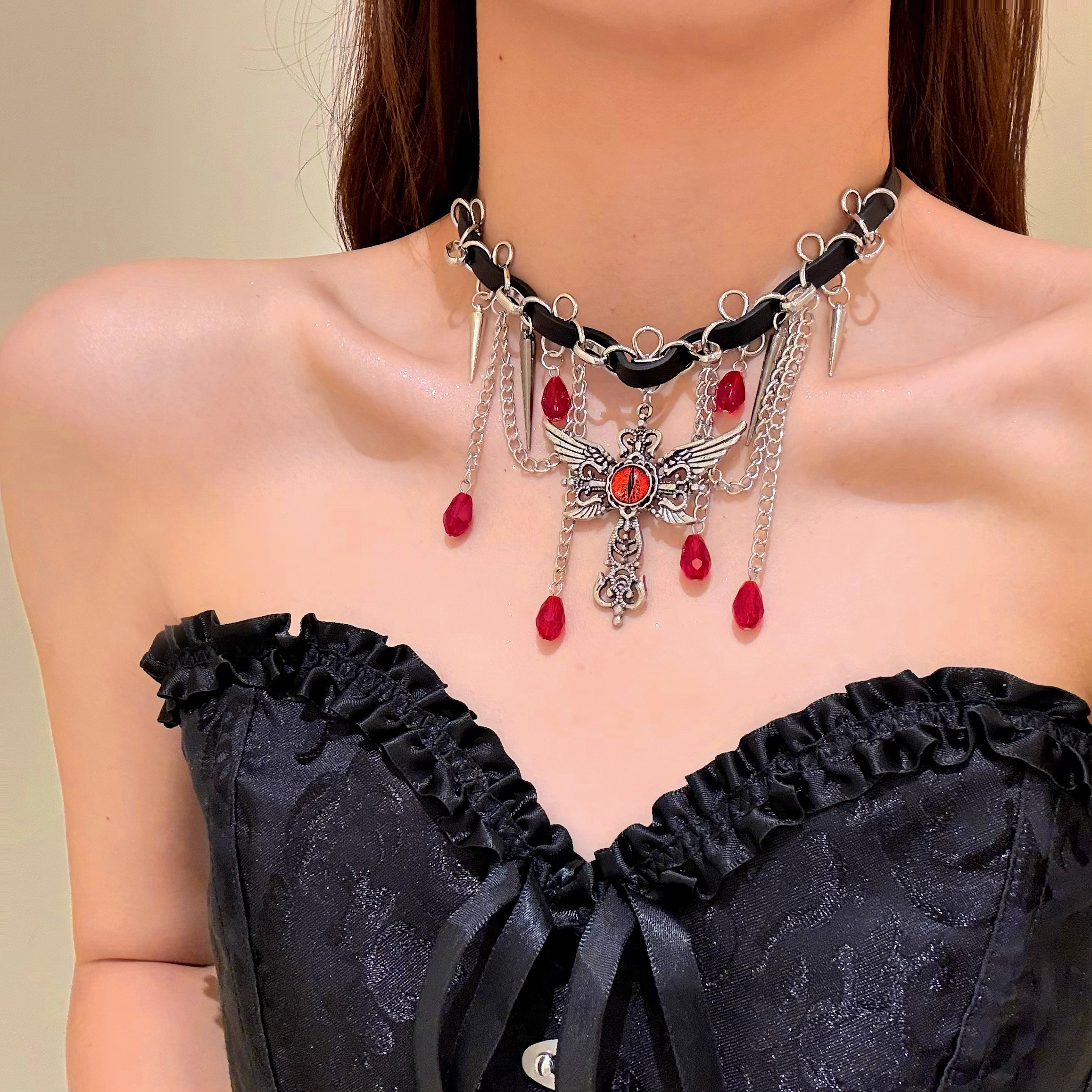 恶魔之眼 暗黑系红色荆棘流苏项圈choker万圣节哥特项链拍照道具