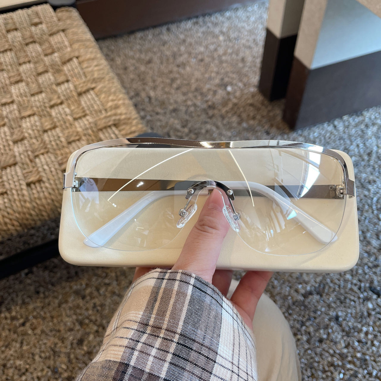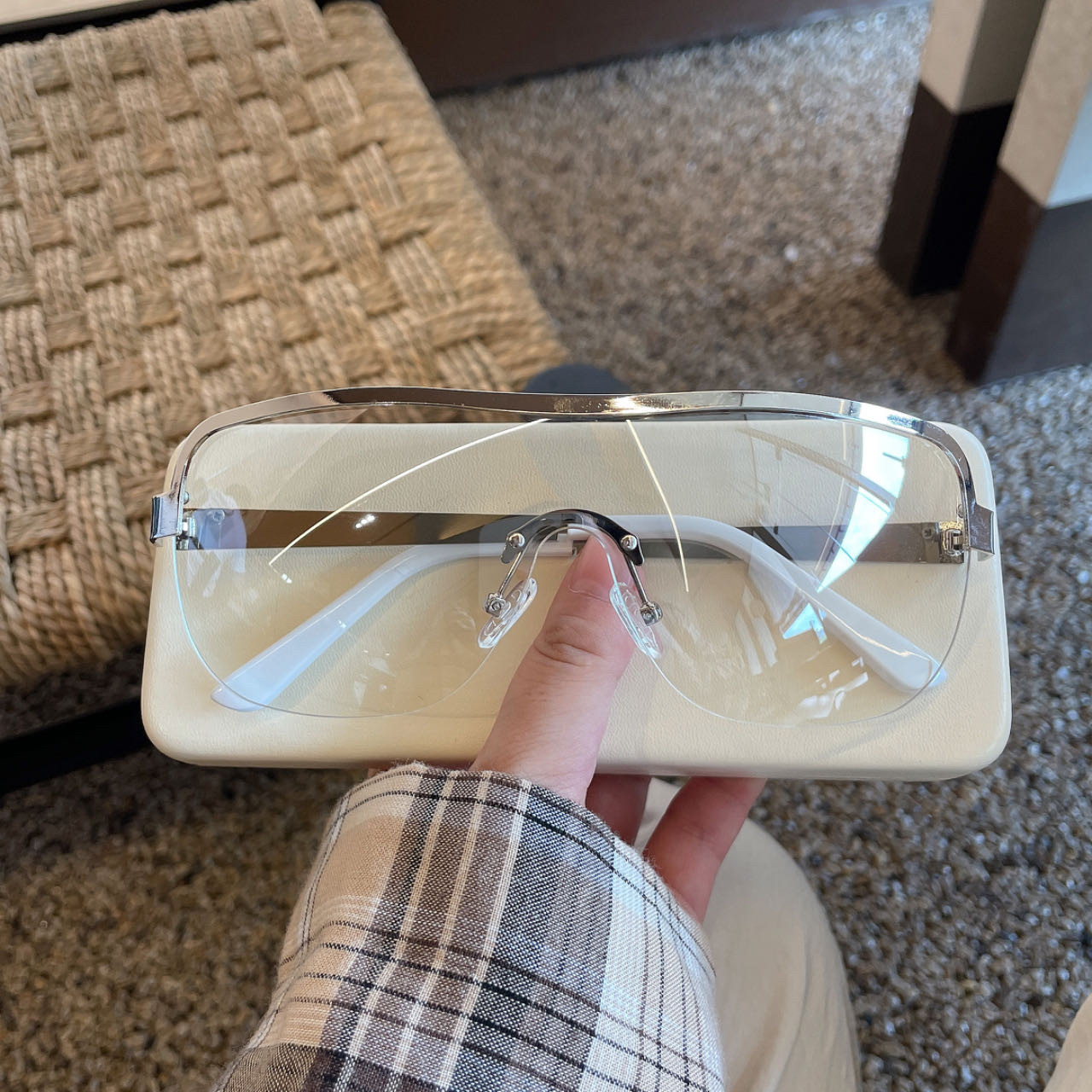 无框连体墨镜女未来感个性辣妹浅灰色防风骑行防紫外线太阳镜男款