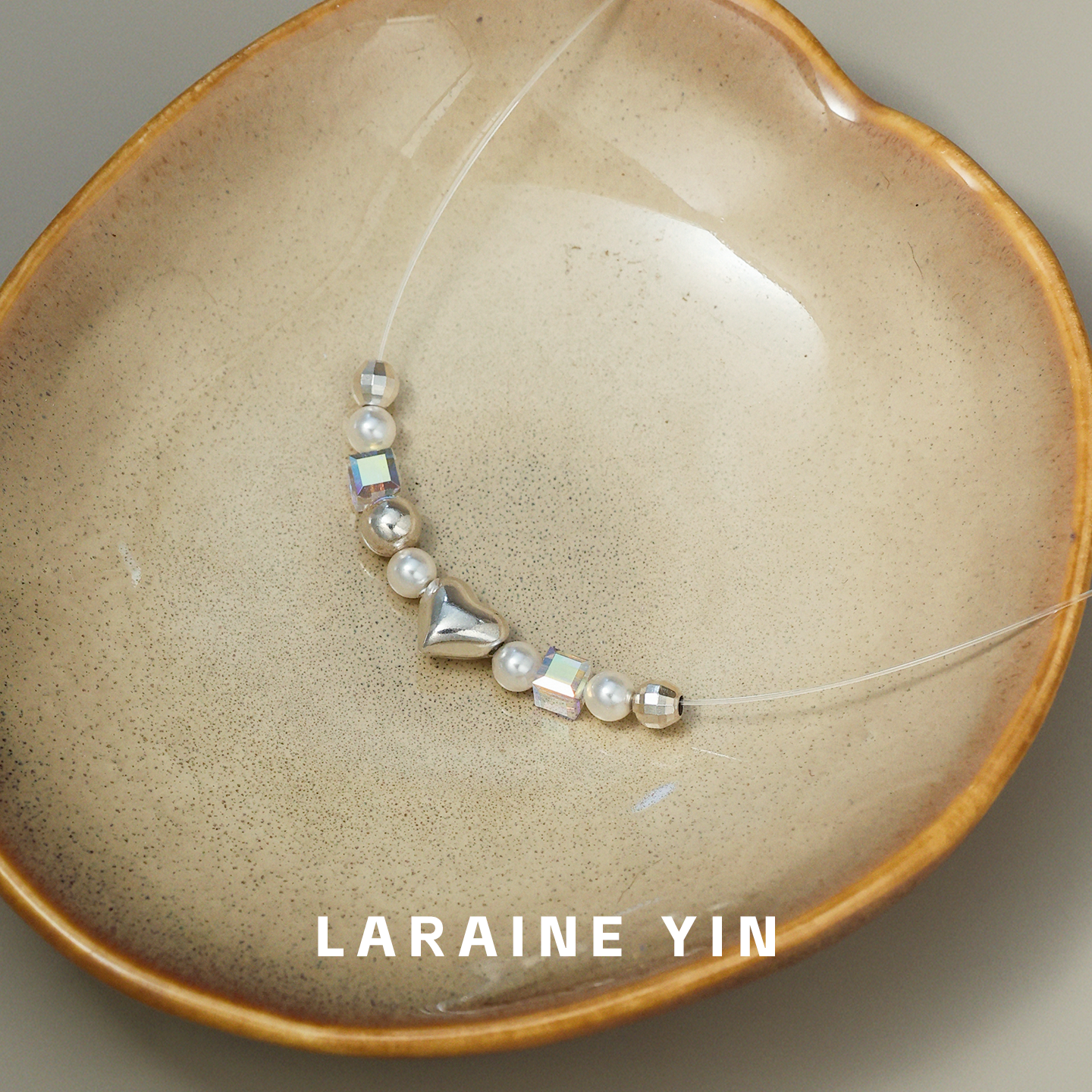 【买3免1】原创设计S925银爱心隐形鱼线项链女施家珍珠彩玻璃颈链