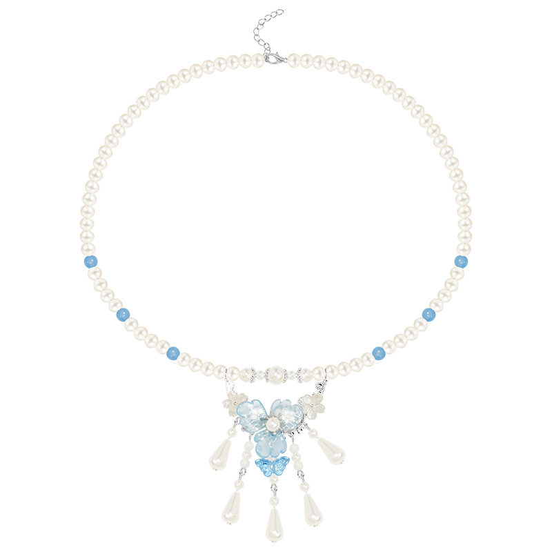 古风明制软璎珞仿珍珠流苏项链蓝色汉服唐风坦领旗袍清冷感配饰女
