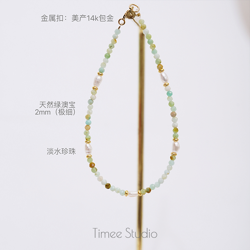 Timee恬觅 芷汀 天然绿澳宝淡水珍珠极细14K美包手链礼物送人
