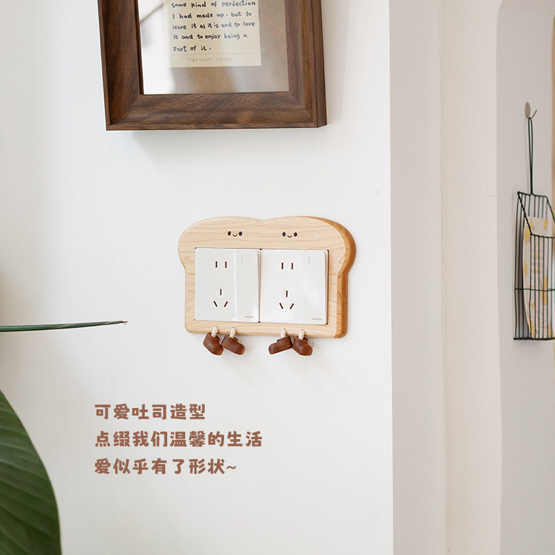 面包开关贴/实木面包板开关摆件可爱创意原木风墙面装饰
