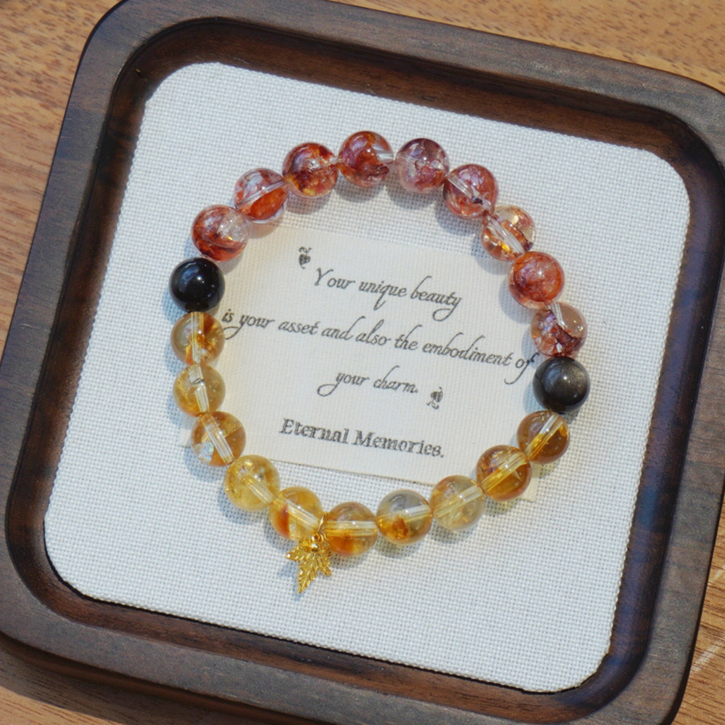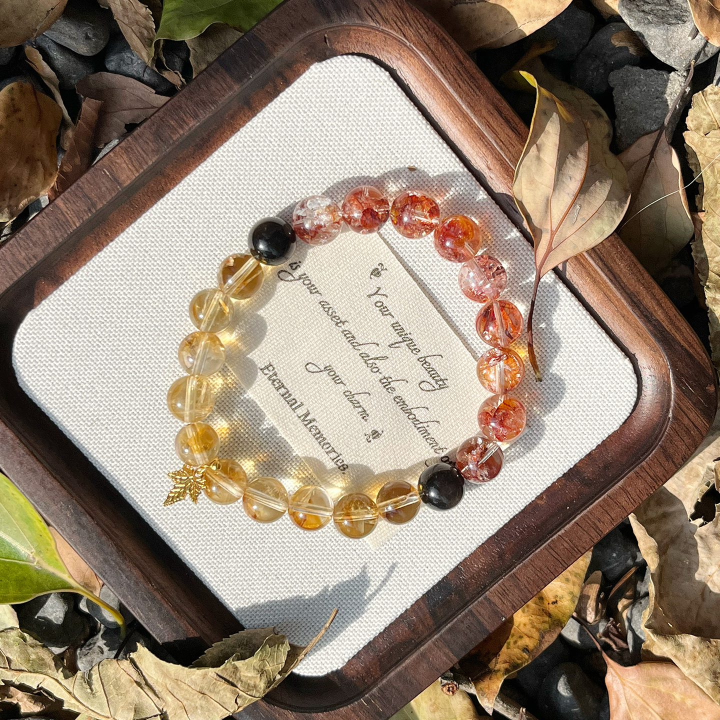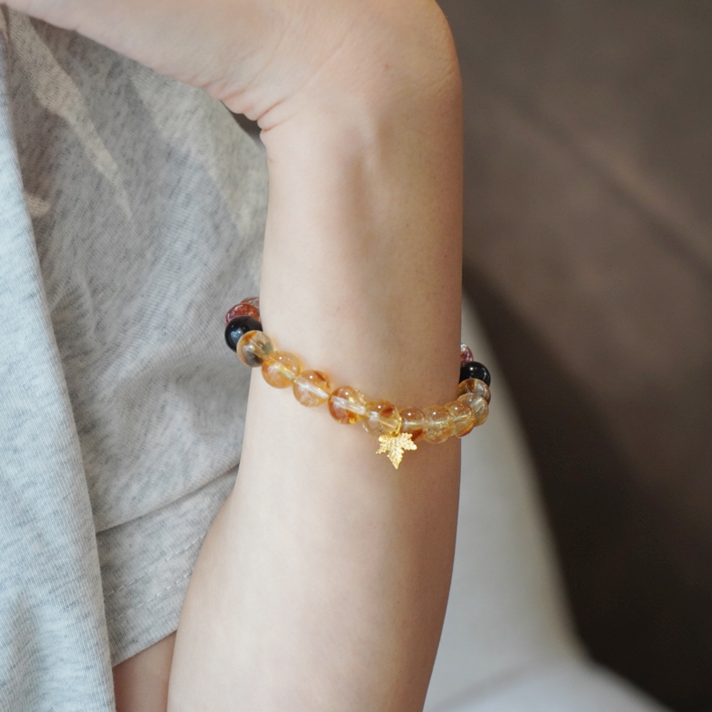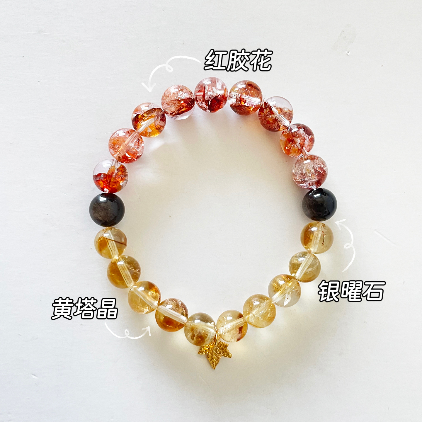 鹿与花园「枫」秋日红胶黄塔晶银曜石水晶手串手链招财治愈礼物女