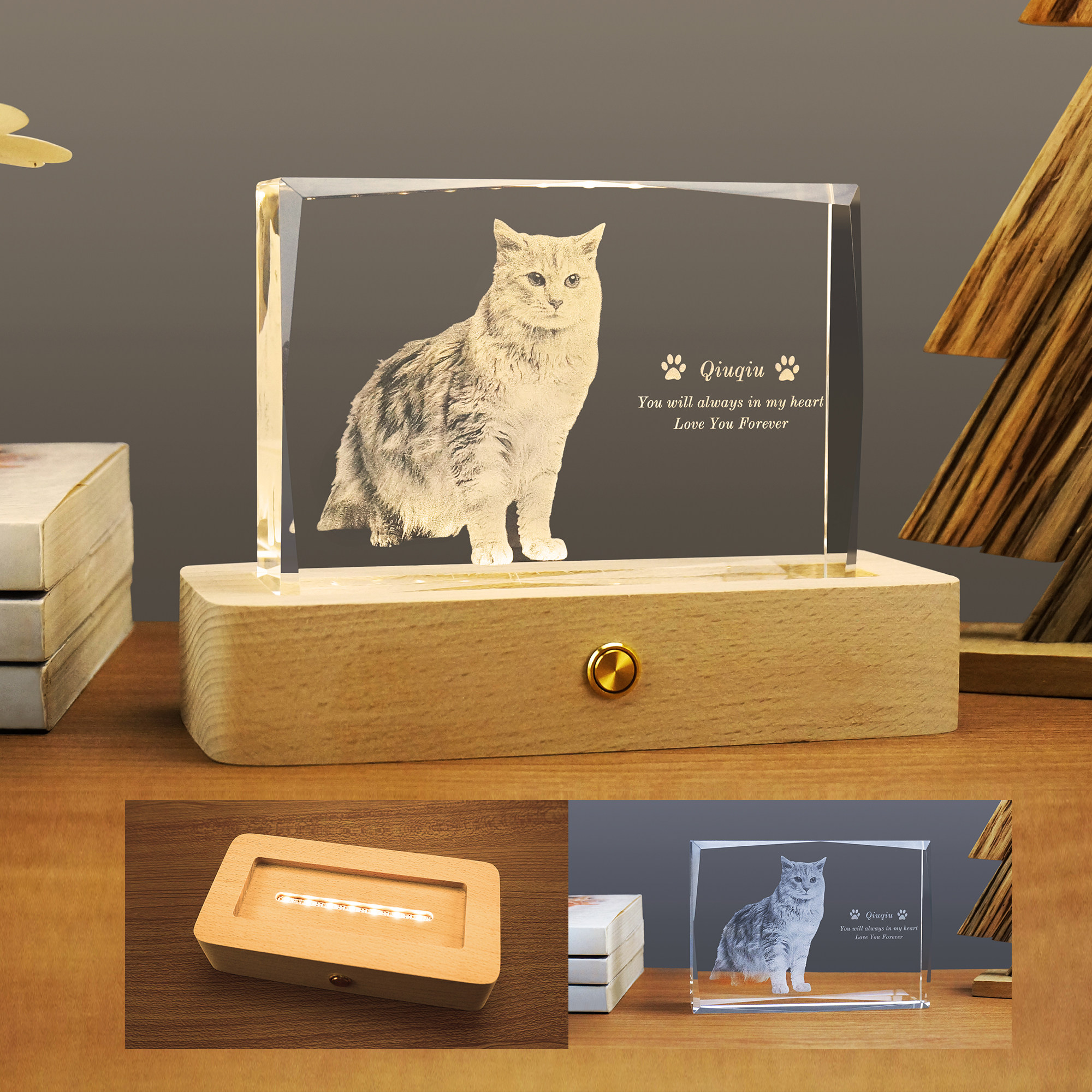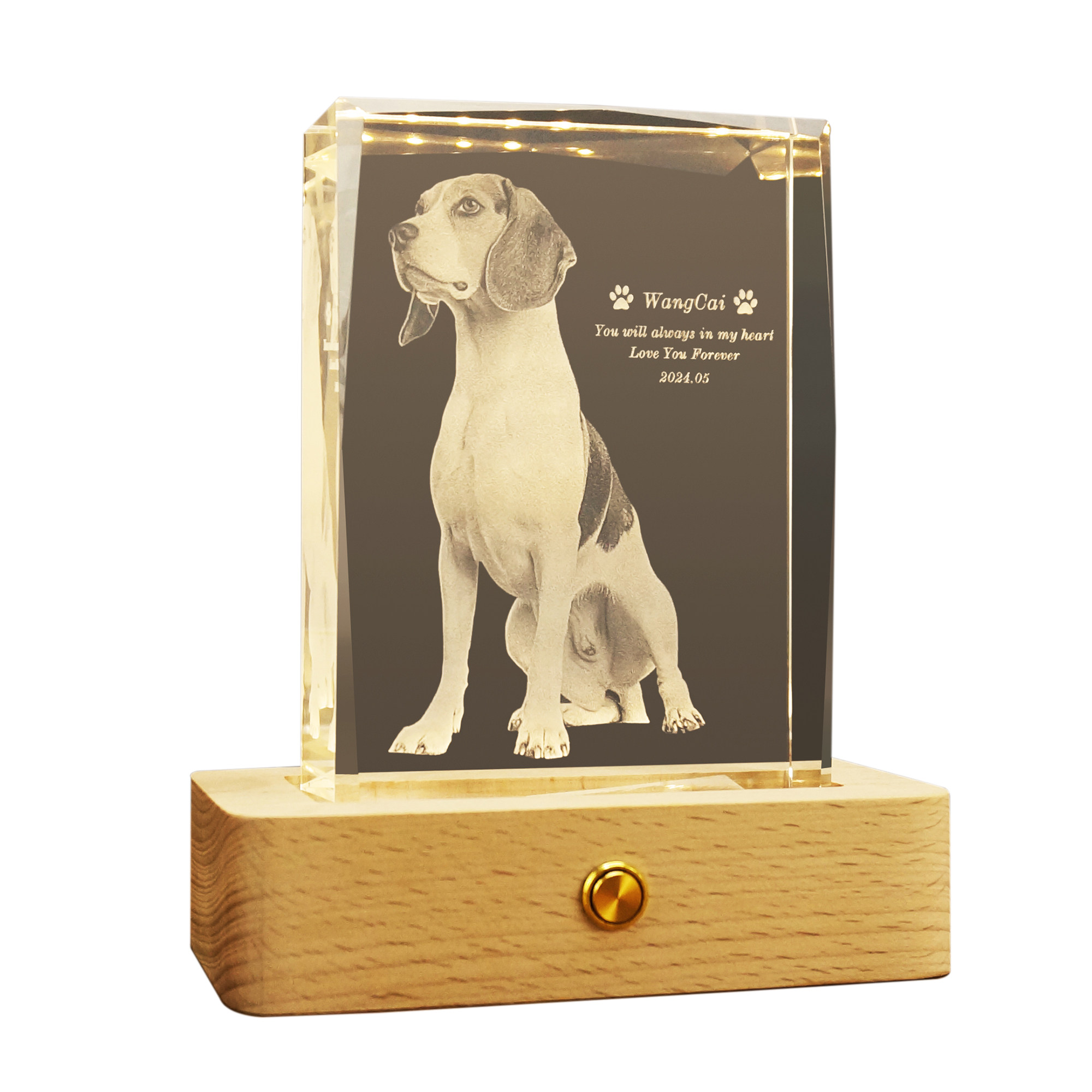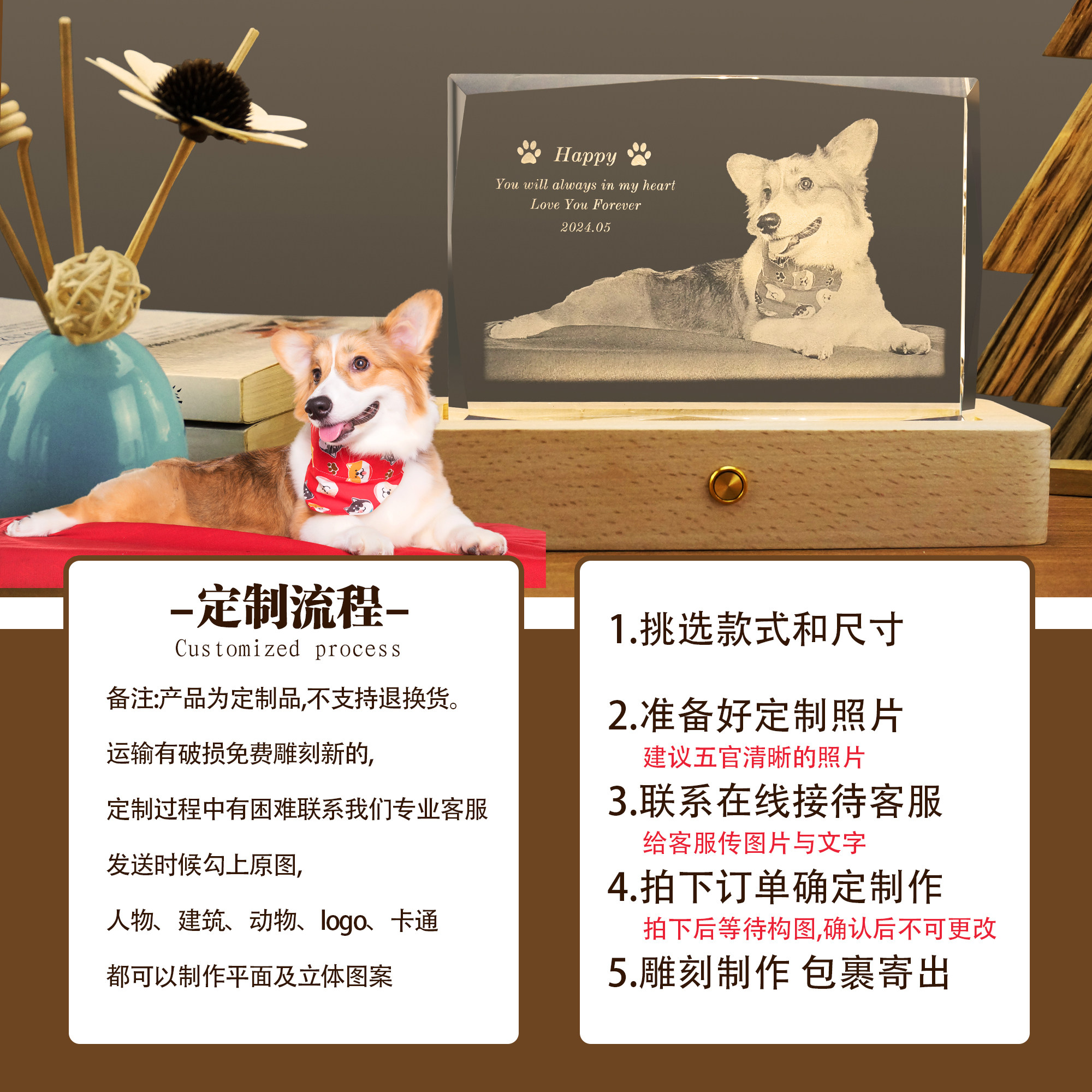 定制宠物爪印文字纪念品创意礼物狗狗猫咪照片3D内雕水晶相框摆台