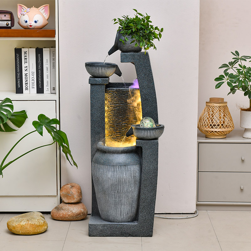 风车流水摆件循环水客厅装饰品大件落地招财电视柜V旁加湿器风水