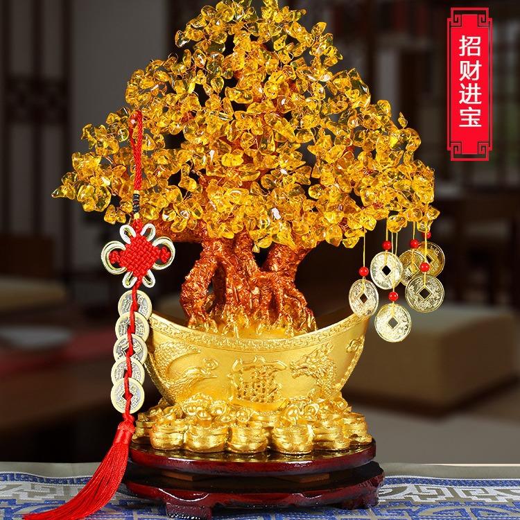 黄水晶发财树招财摆件家居酒柜装饰品电视柜小元宝摇钱树开业礼品
