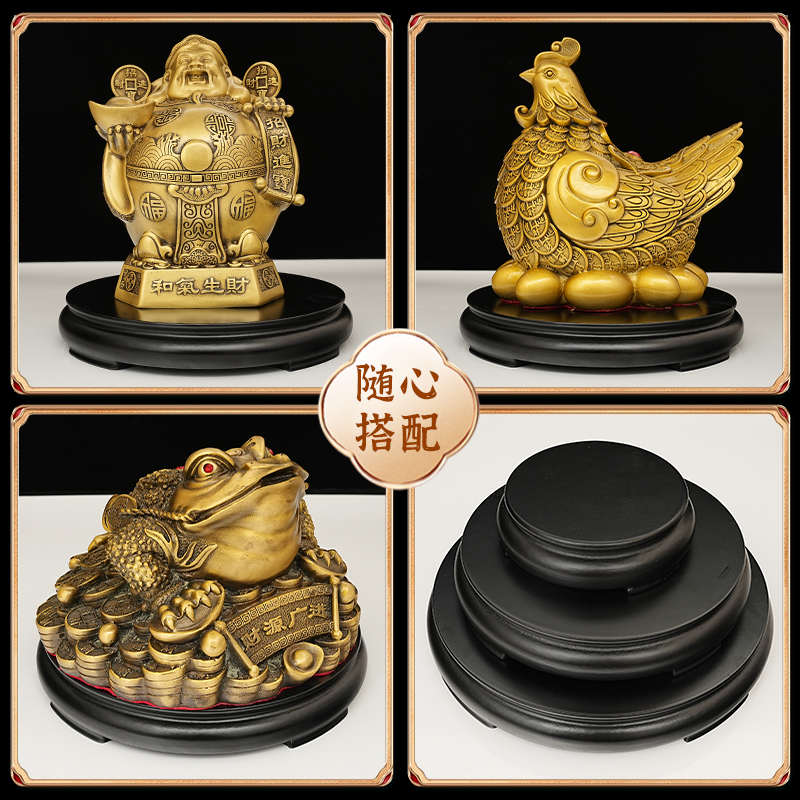 黑色圆形底座实木装饰摆件客厅办公室桌面装饰品