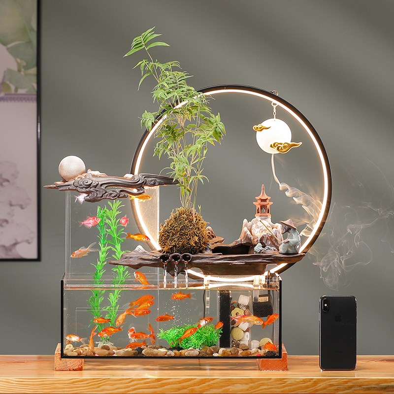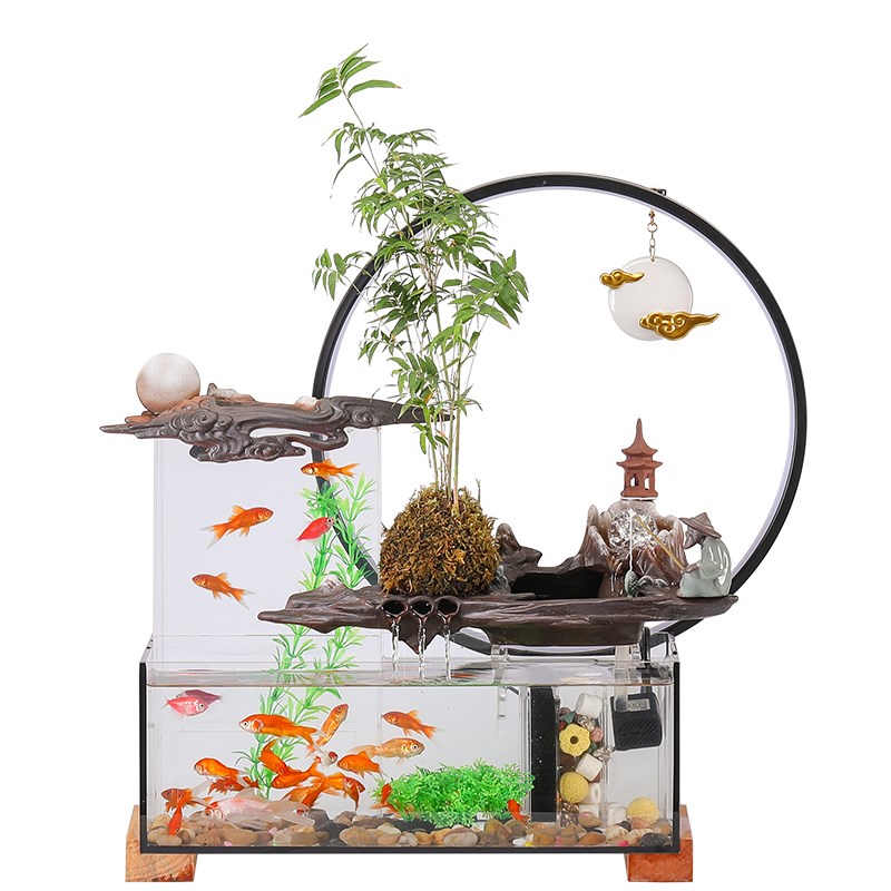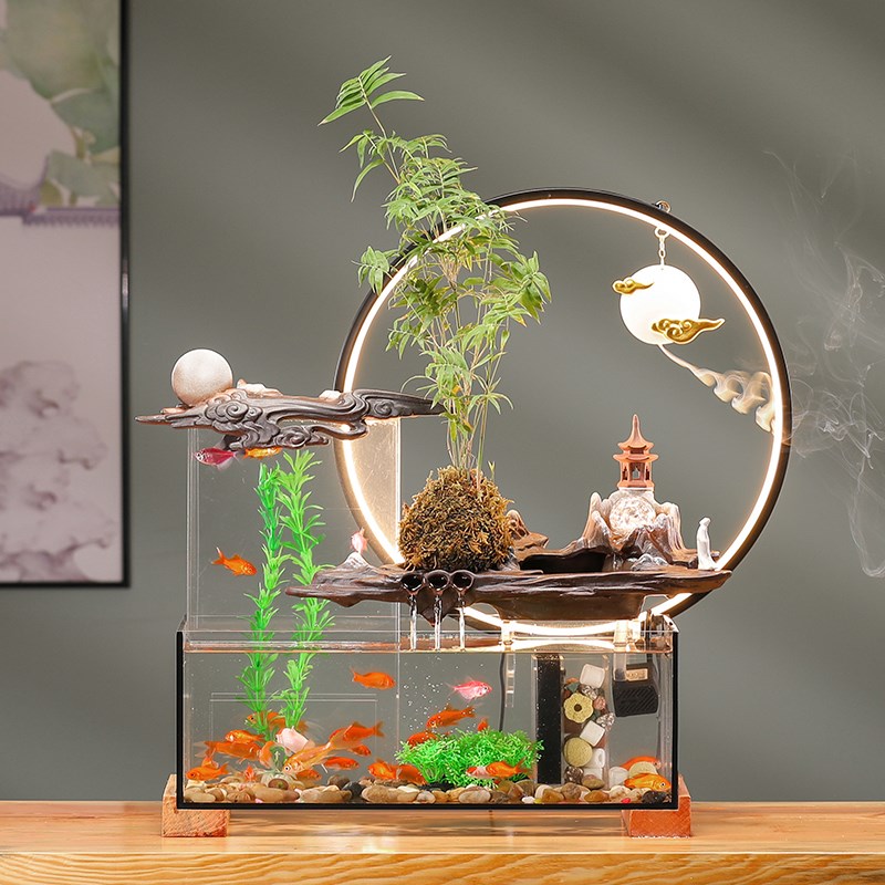 创意流水鱼缸摆件家居饰品客厅办公室桌面L水循环造景乔迁开业礼