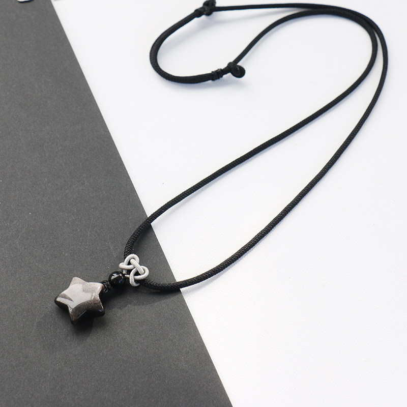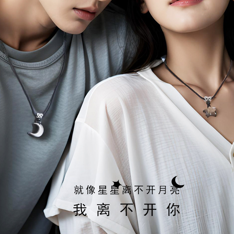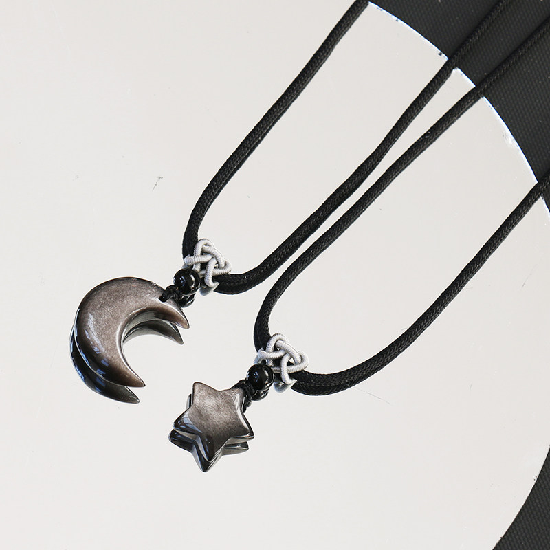 星星月亮天然银曜石吊坠情侣项链一对学生配饰女秋冬毛衣项链男款