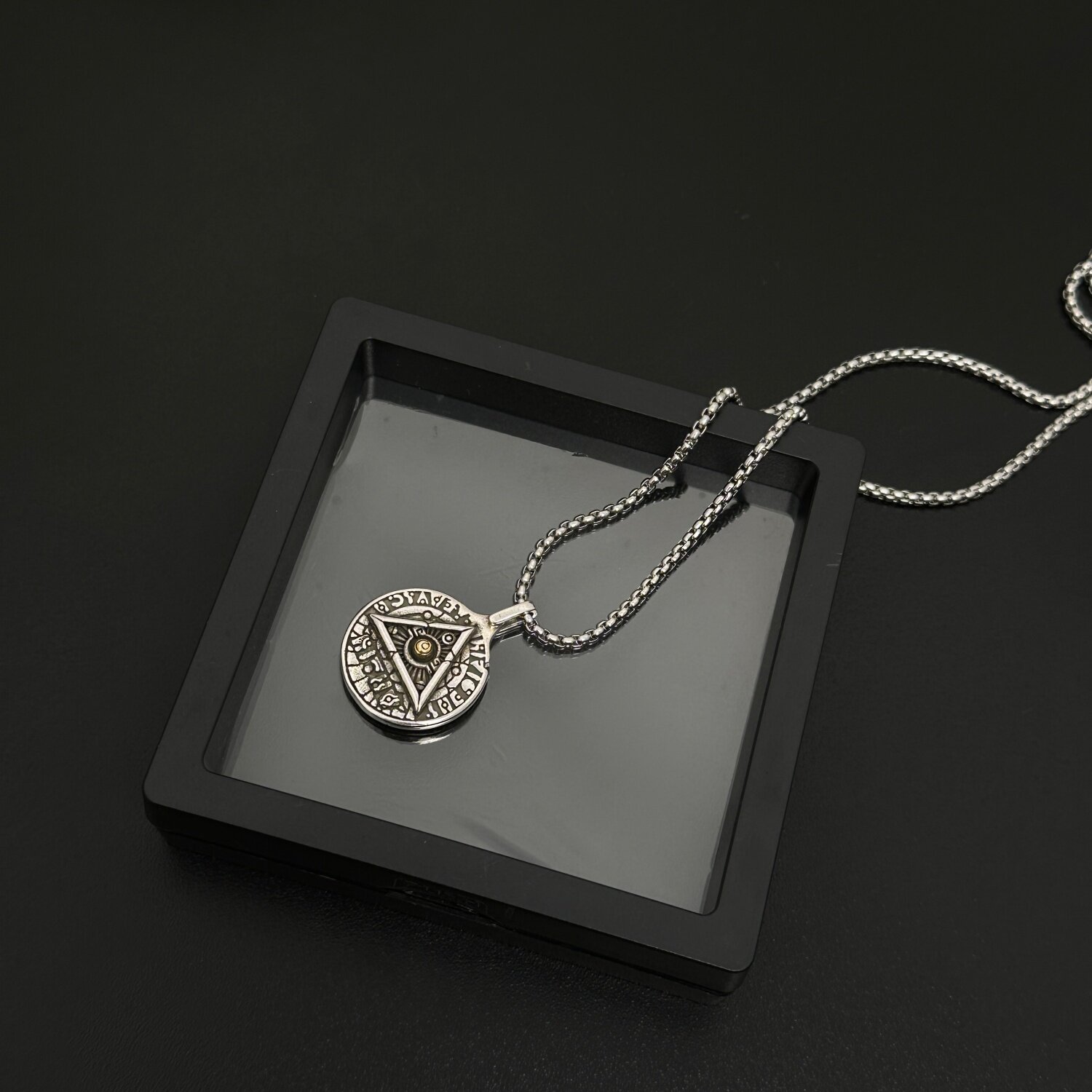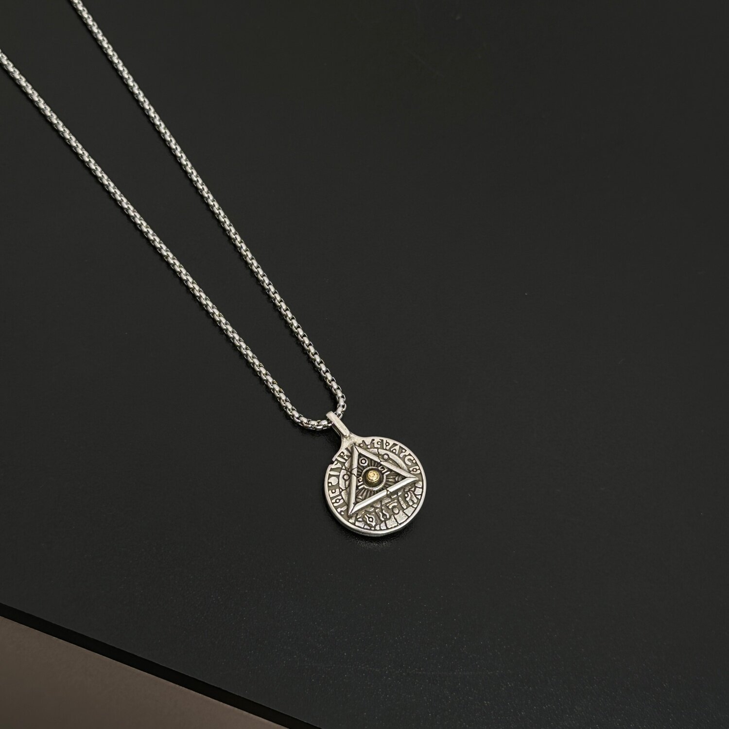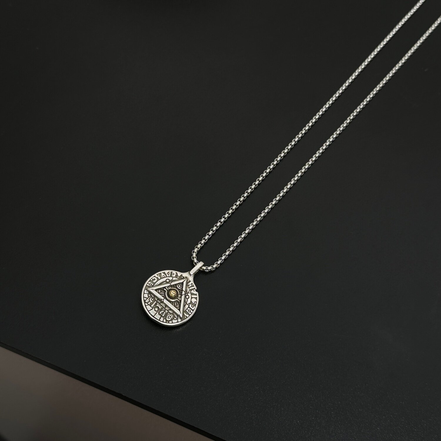 复古荷鲁斯上帝之眼项链男士潮牌嘻哈圆牌吊坠女小众设计感毛衣链
