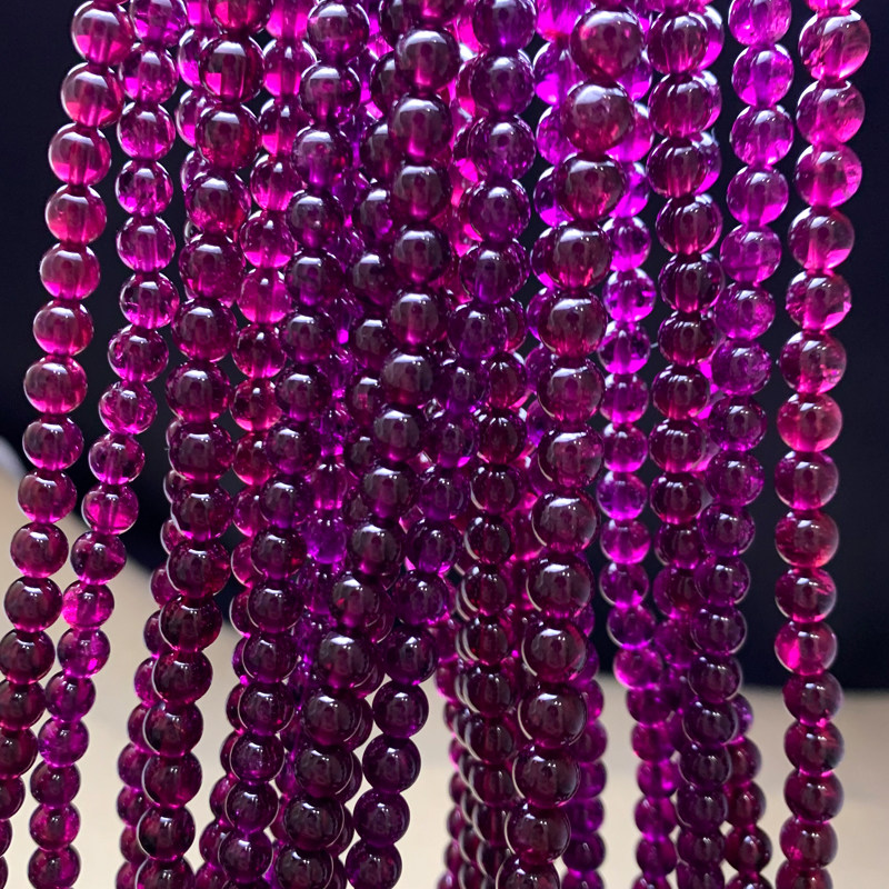 天然冰种巴西紫牙乌石榴石手链玫紫色佛珠手串三圈水晶礼物女人石