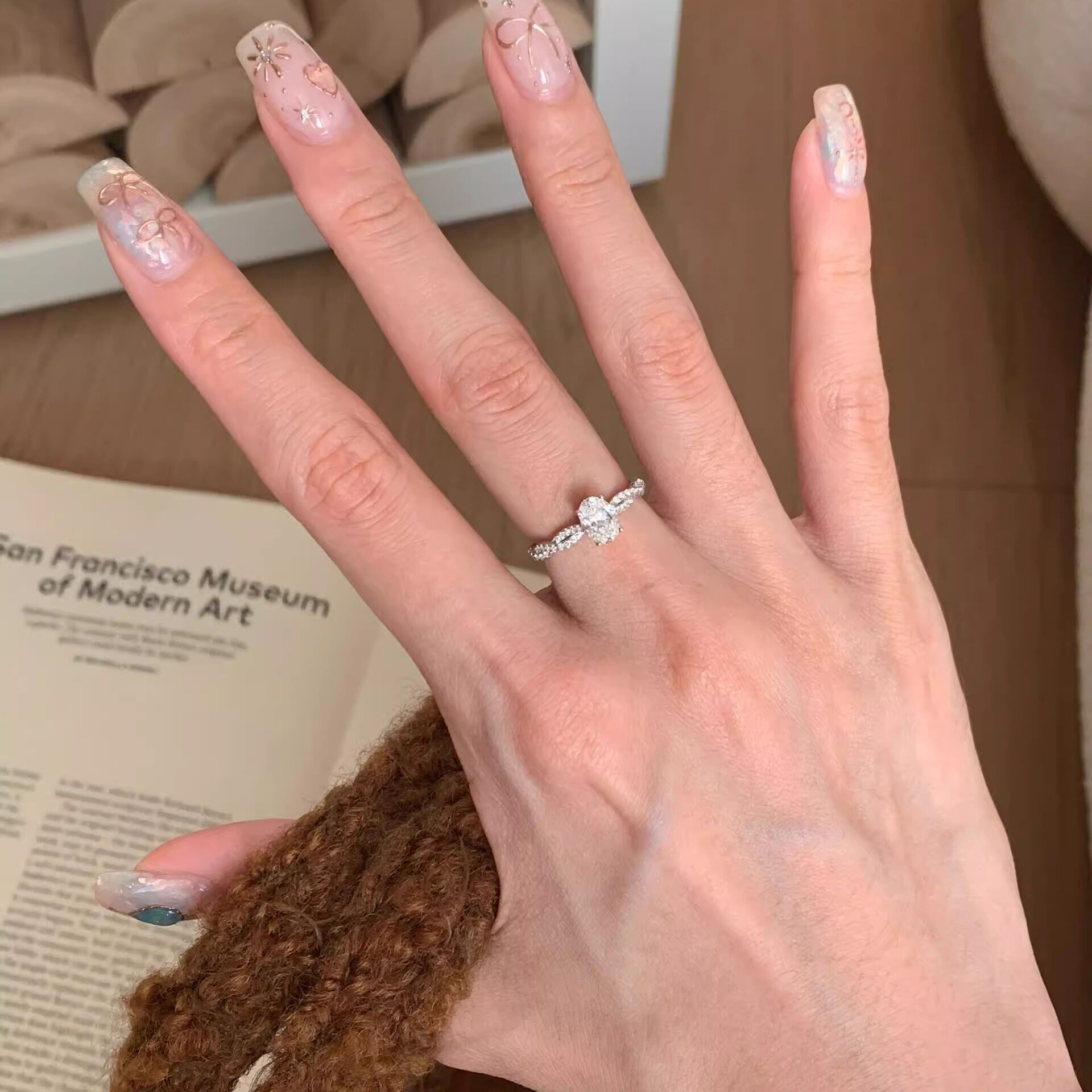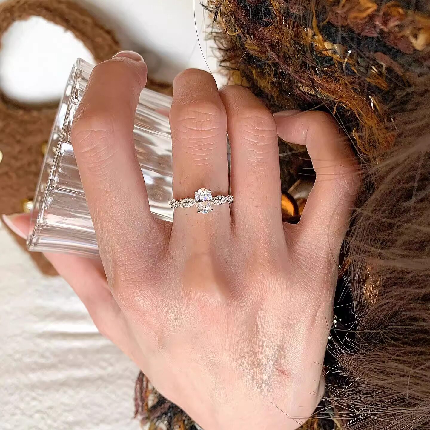 莫桑石钻戒旋转芭蕾鸽子蛋戒指纯银女小众设计精致轻奢时尚食指戒