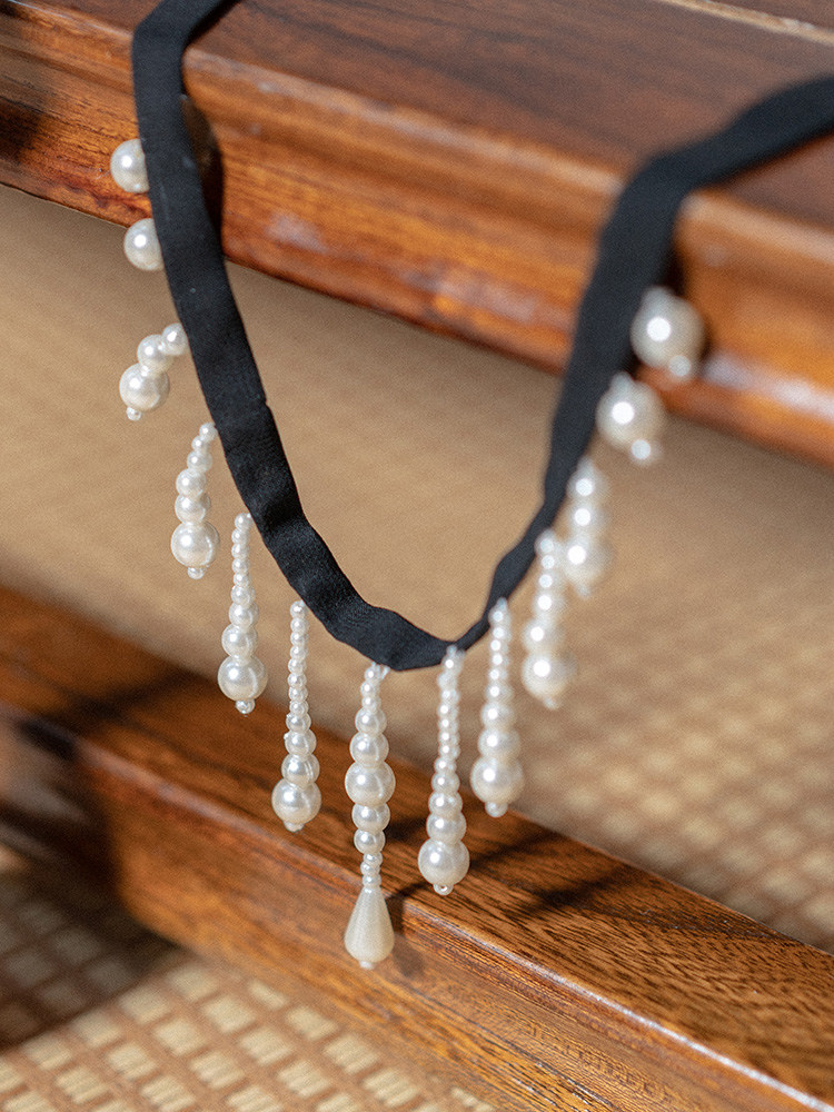 烛颜汉服 寒露凝霜 花边珍珠女手工钉珠汉服发带外出简约束发头饰