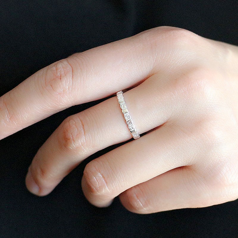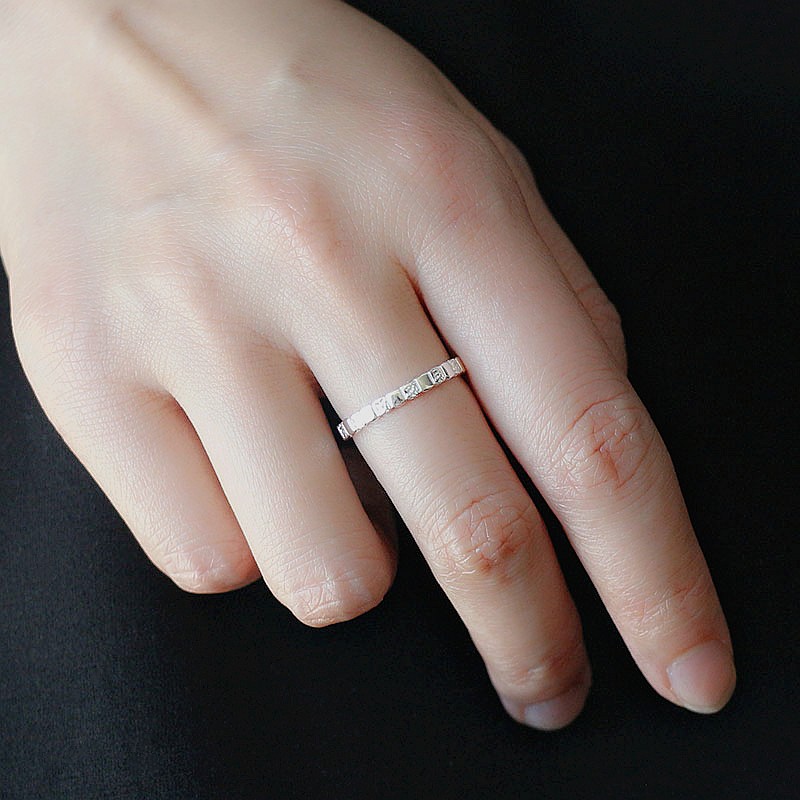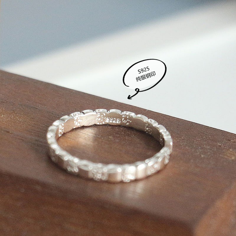 S925纯银方块肌理熔岩细戒指女食指戒开口指环小众设计潮流银饰