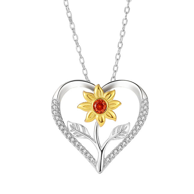 希音爆款欧美风S925纯银双色向日葵项链轻奢小众高级感心形毛衣链