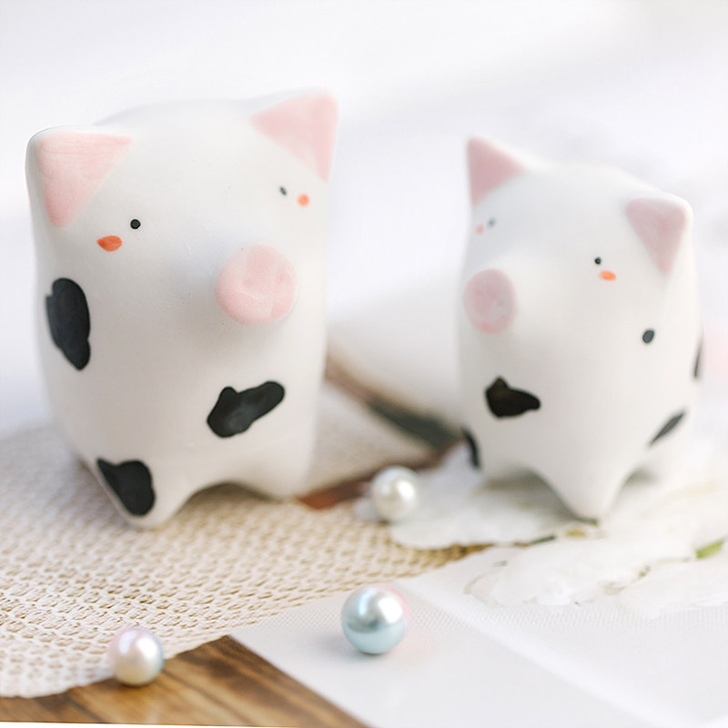 南国瓦瓷手工创意陶瓷小猪家居摆件可爱小动物桌面装饰本命年礼物