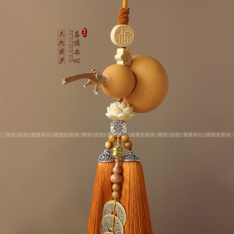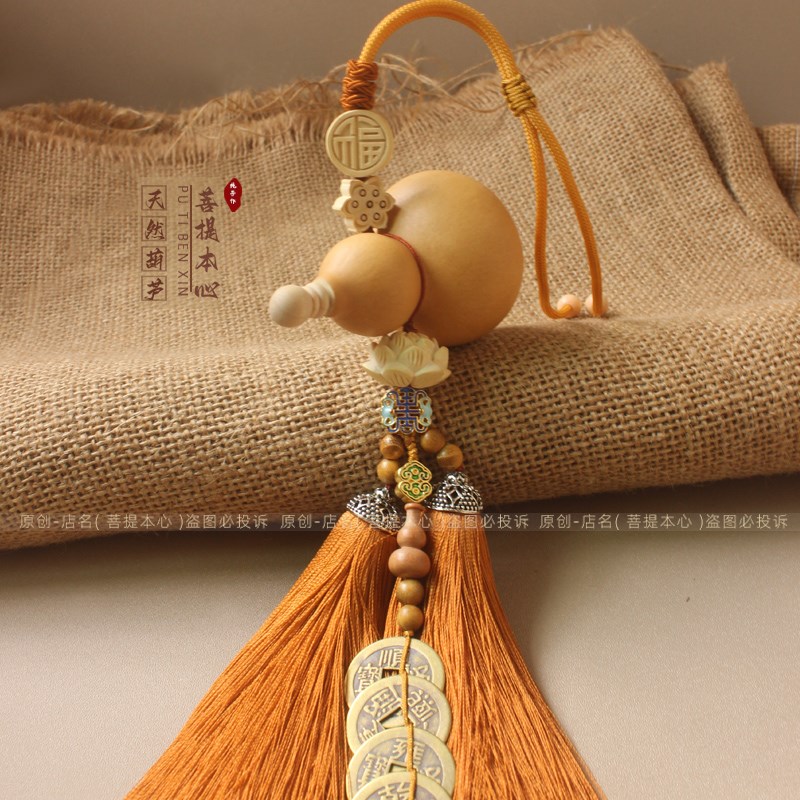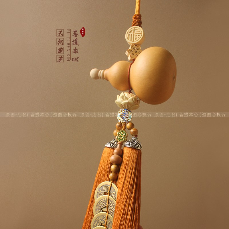 天然门对门葫芦形挂件五帝钱黄铜大门客厅玄关卧室开口真葫芦挂饰