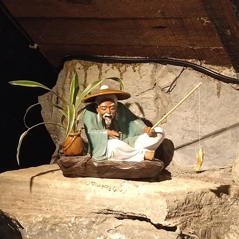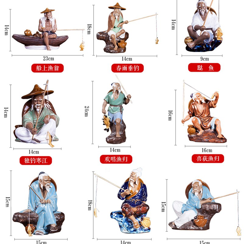 石湾陶瓷工艺品摆件家居装饰品庭院假山盆景鱼缸摆设 姜太公钓鱼