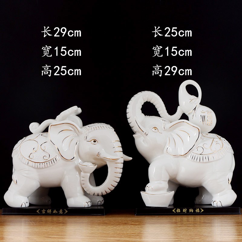 大号陶瓷白色吸水大象摆件一对招财镇宅客厅玄关办公室装饰工艺品