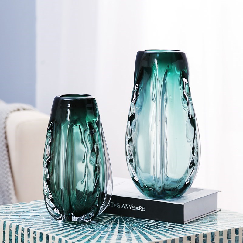 简约现代玻璃绿色花瓶样板房客厅B玄关摆件电视柜插花水培高档花