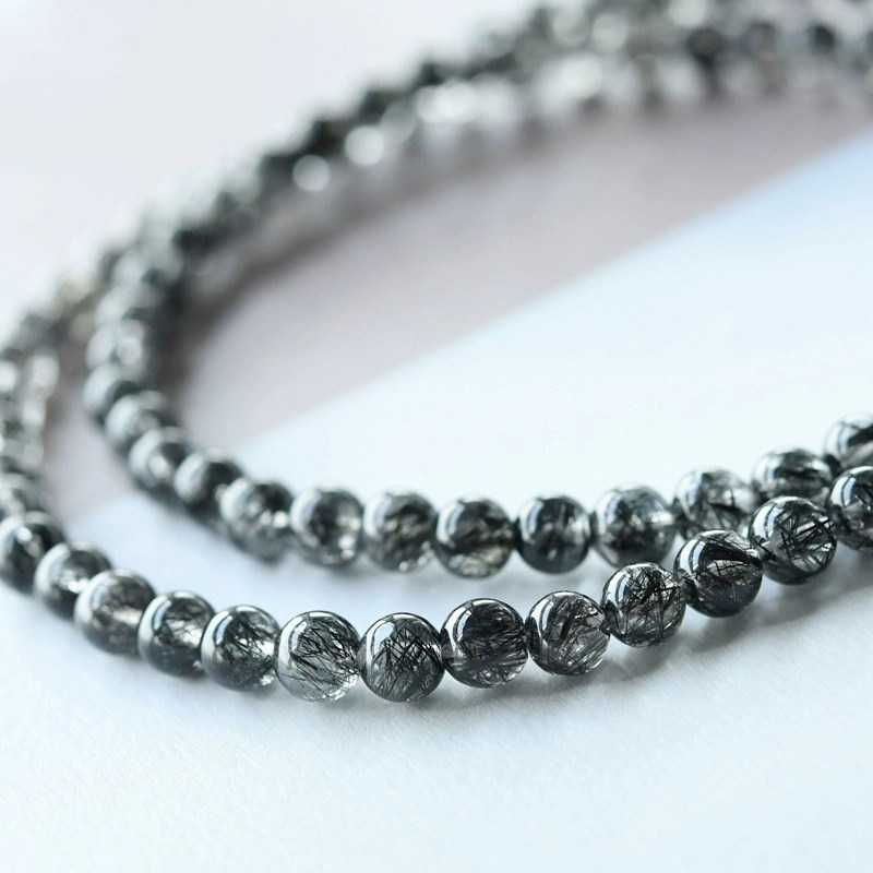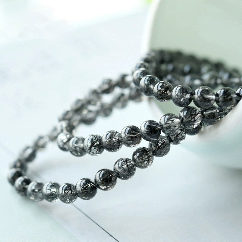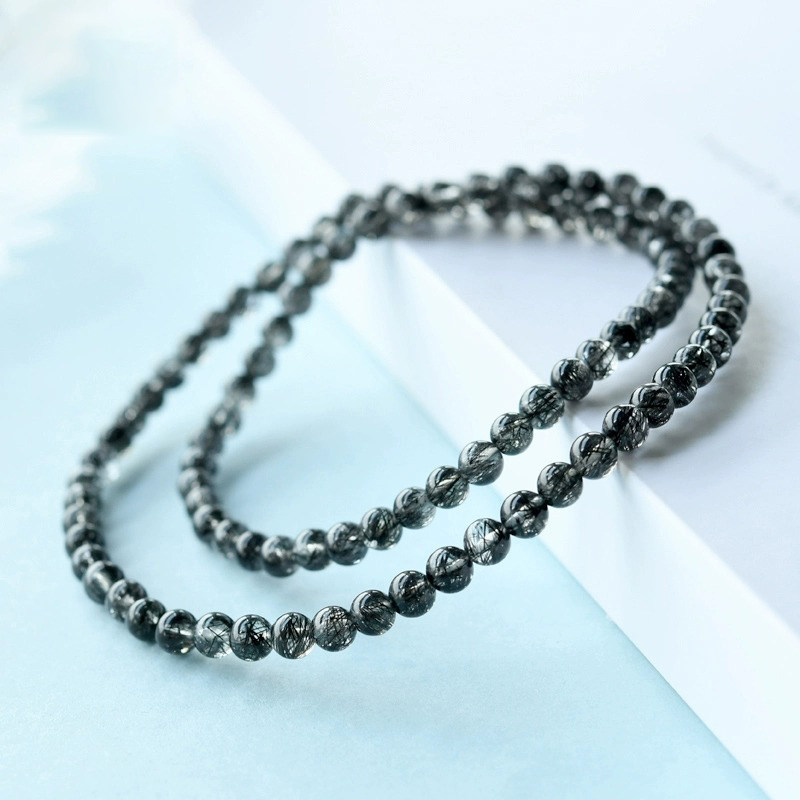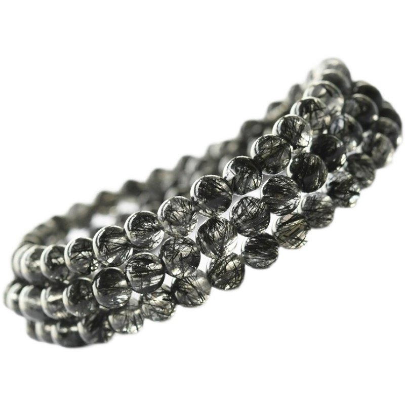 珍藏级天然黑发晶三圈手链黑色水晶钛晶多圈手串男女款散珠子饰品