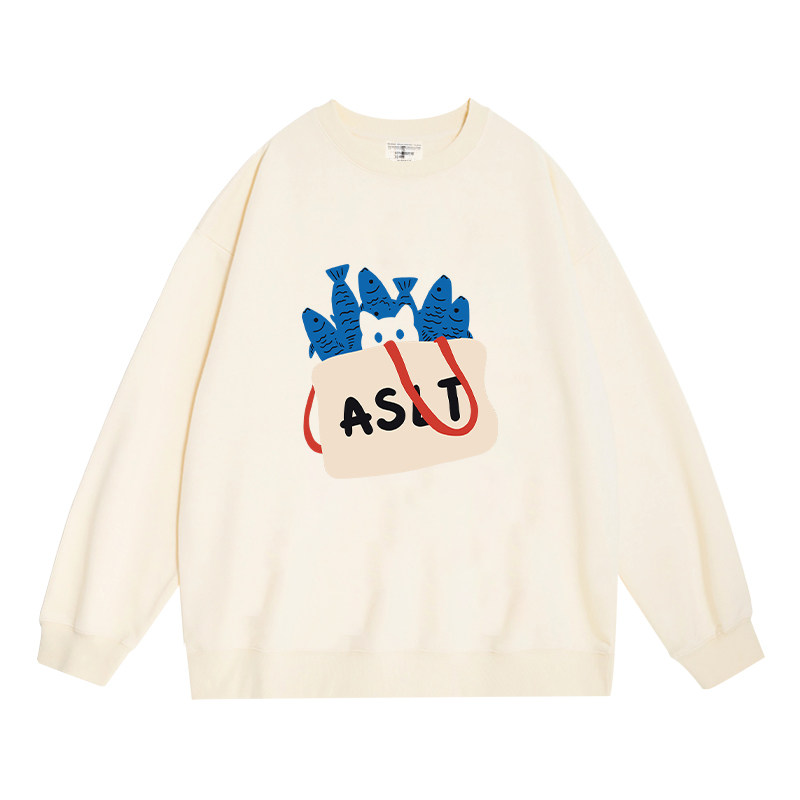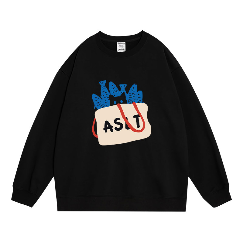 日本offcat章若楠同款黑色圆领卫衣女2025秋冬新款爆款宽松设计感