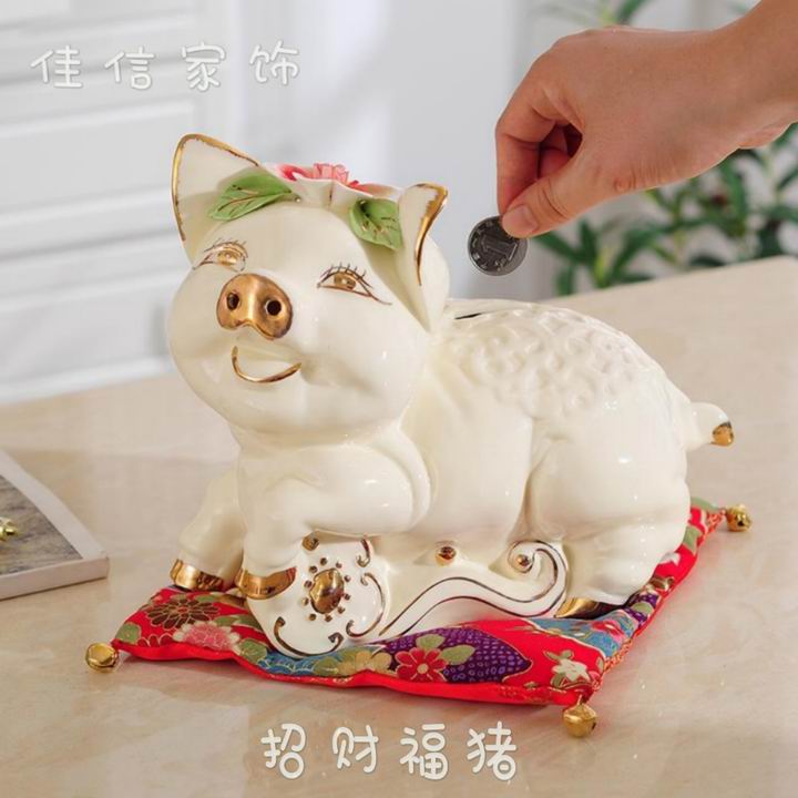 创意招财猫猪摆件布垫加铃围脖铃铛配件工艺礼品摆设坐红垫子饰品