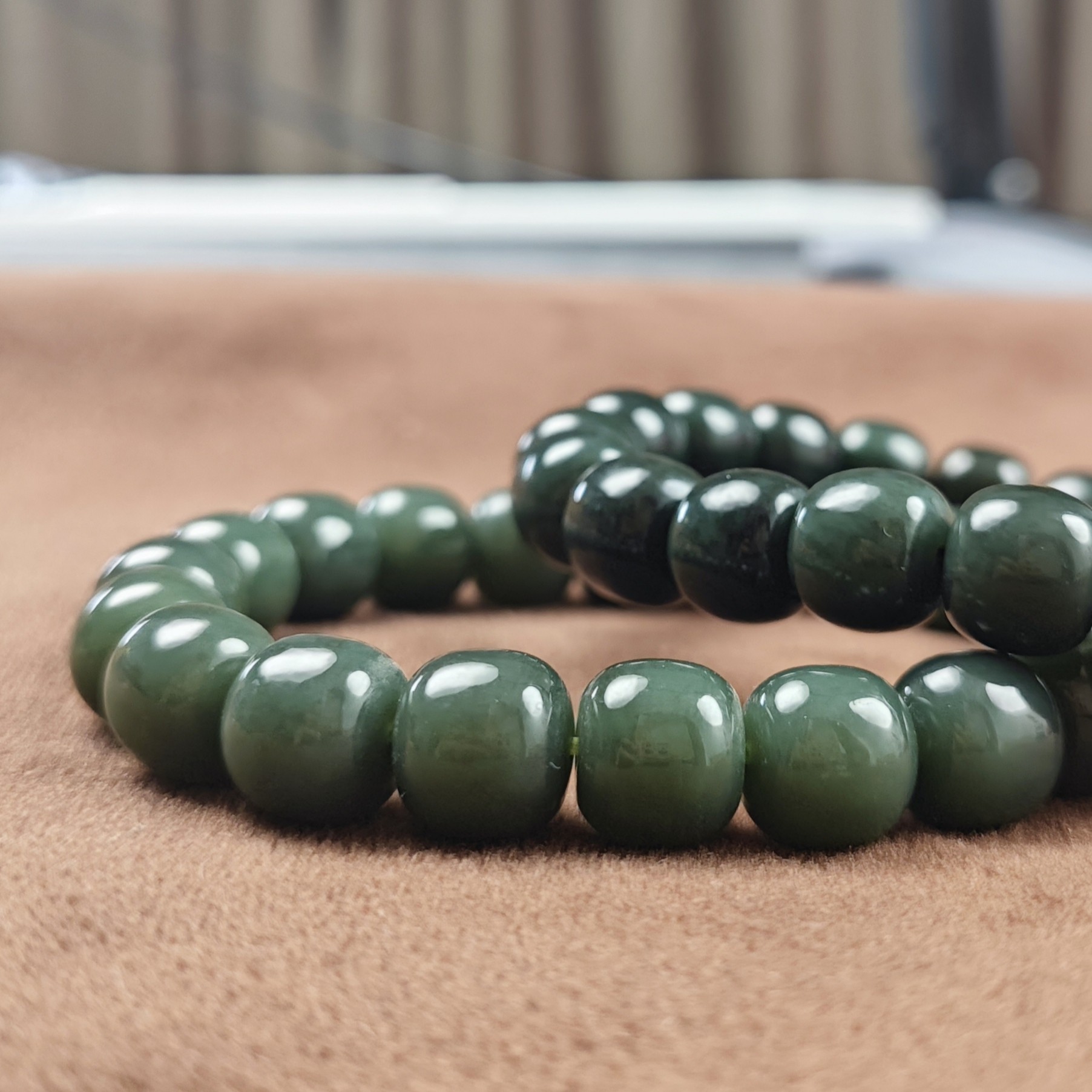 和田玉沙枣青籽料手串蓝调油润细腻老型珠手链新中式古朴风男女款