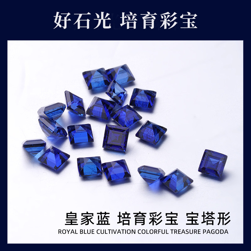 培育彩宝实验室提拉法人工合成阿斯切宝塔形皇家蓝彩宝戒面