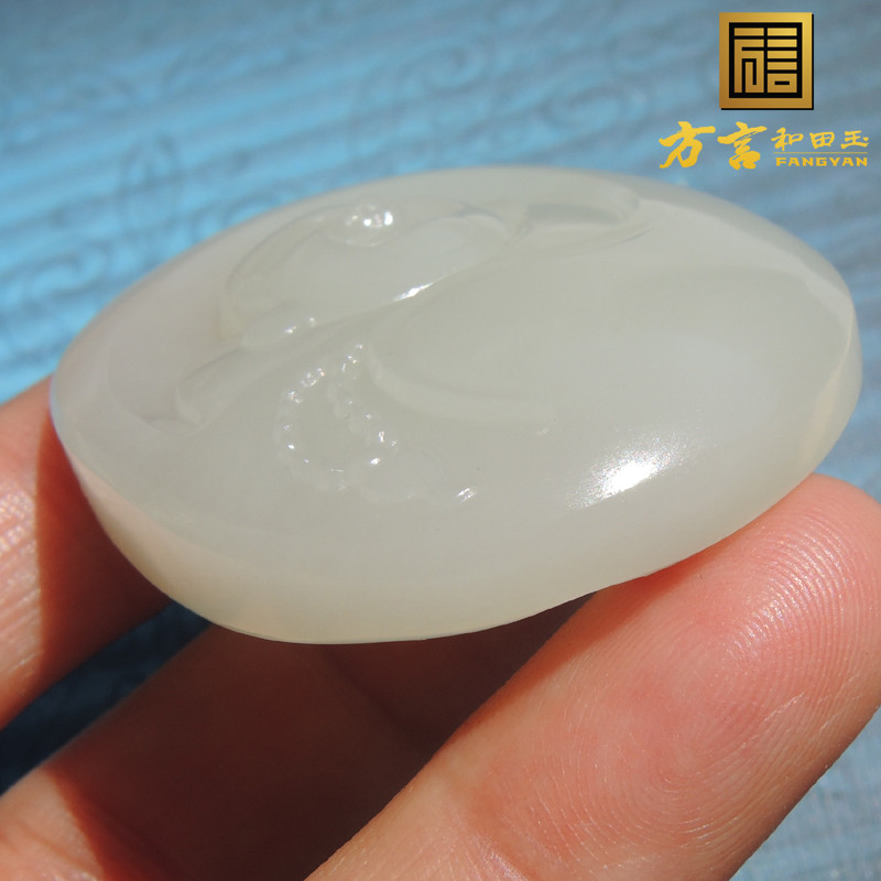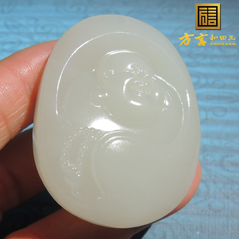 精品方言和田玉珍藏级新疆无结构留皮孔羊脂白玉籽料笑佛吊坠F