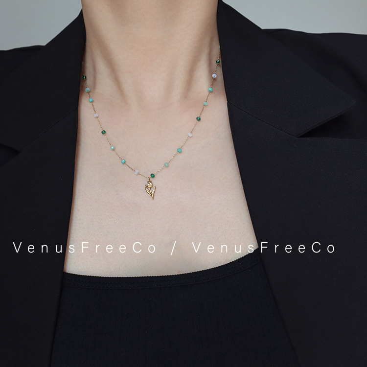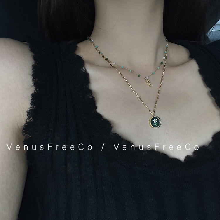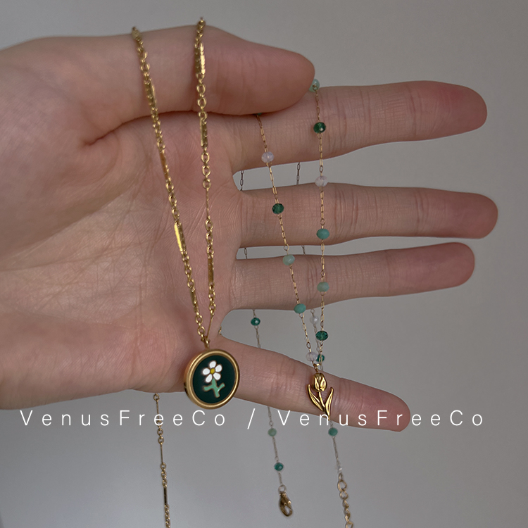黑绿cp小花 2选单戴/叠戴质感18K镀金韩国小雏菊郁金香锁骨链项链